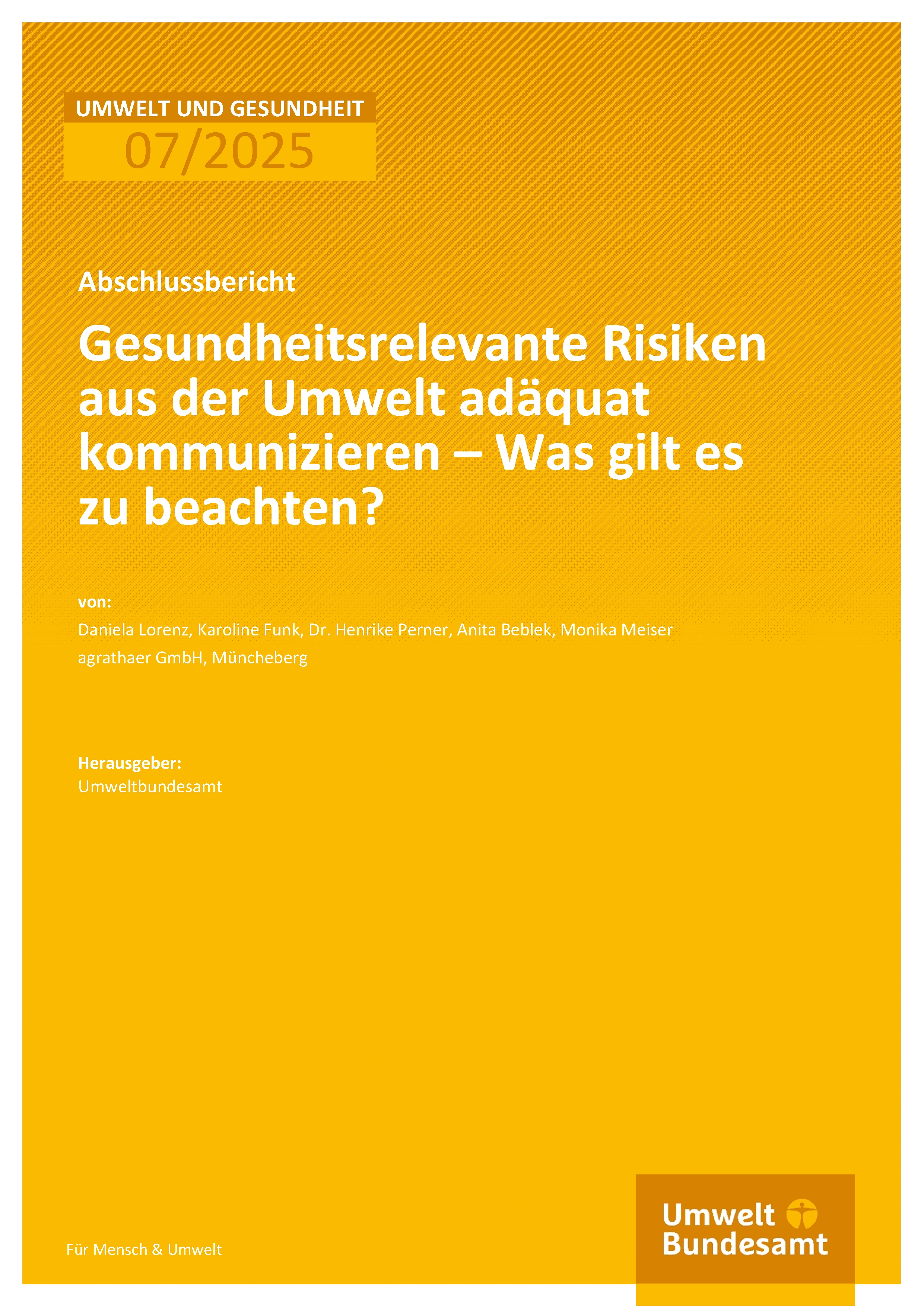 Cover des Berichts "Gesundheitsrelevante Risiken aus der Umwelt adäquat kommunizieren – Was gilt es zu beachten?"
