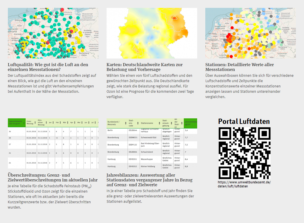 Der Luftqualitätsindex aus drei Schadstoffen zeigt auf einen Blick, wie gut die Luft an den einzelnen Messstationen ist und gibt Verhaltensempfehlungen bei Aufenthalt in der Nähe der Messstation.