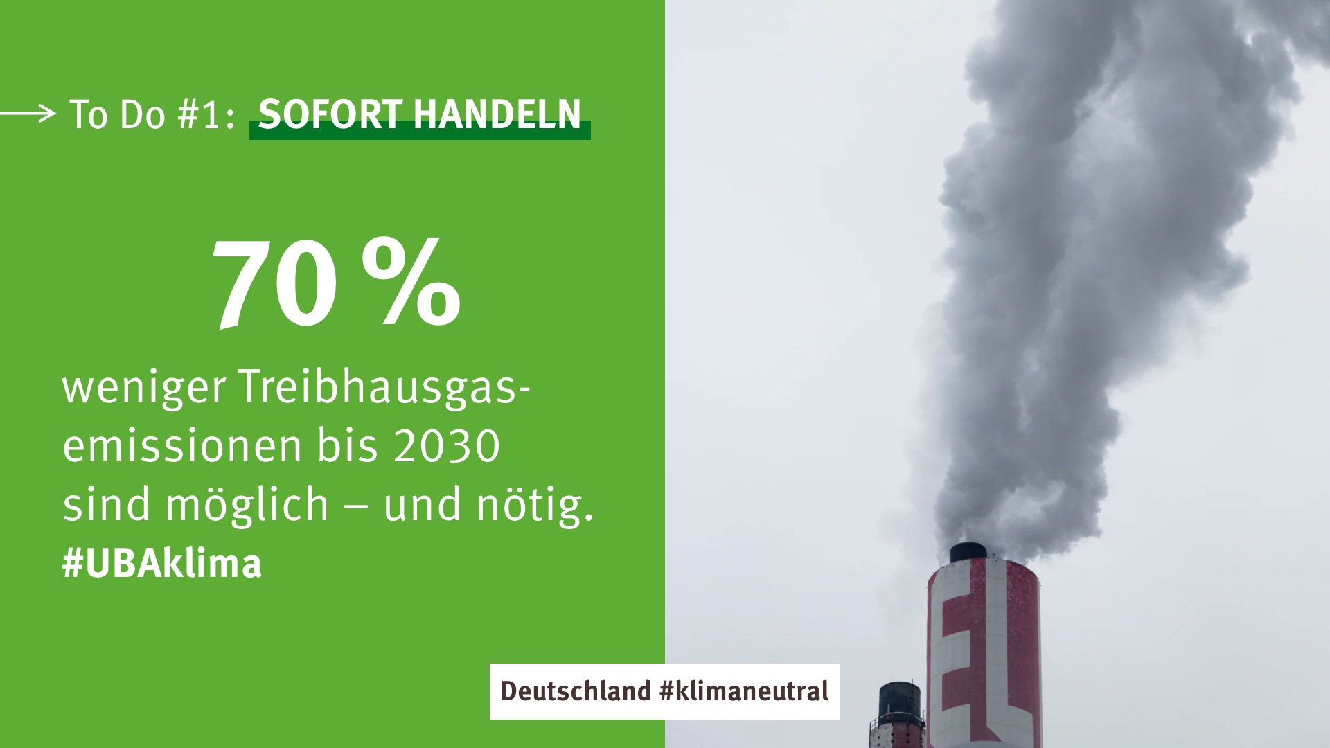 Deutschland klimaneutral: 70 % weniger Treibhausgasemissionen bis 2030 sind möglich.