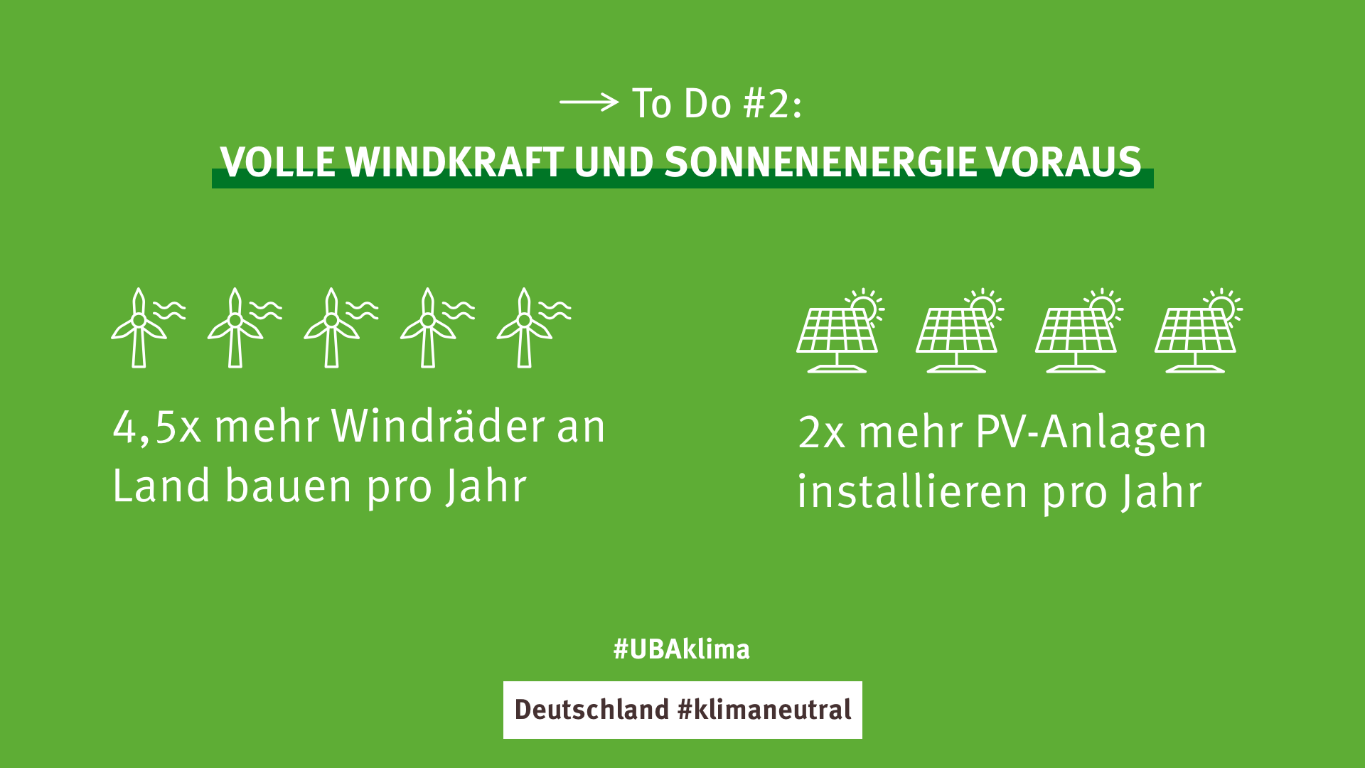 Deutschland klimaneutral: Windkraft und Sonnenenergie massiv für die Klimaziele ausbauen.