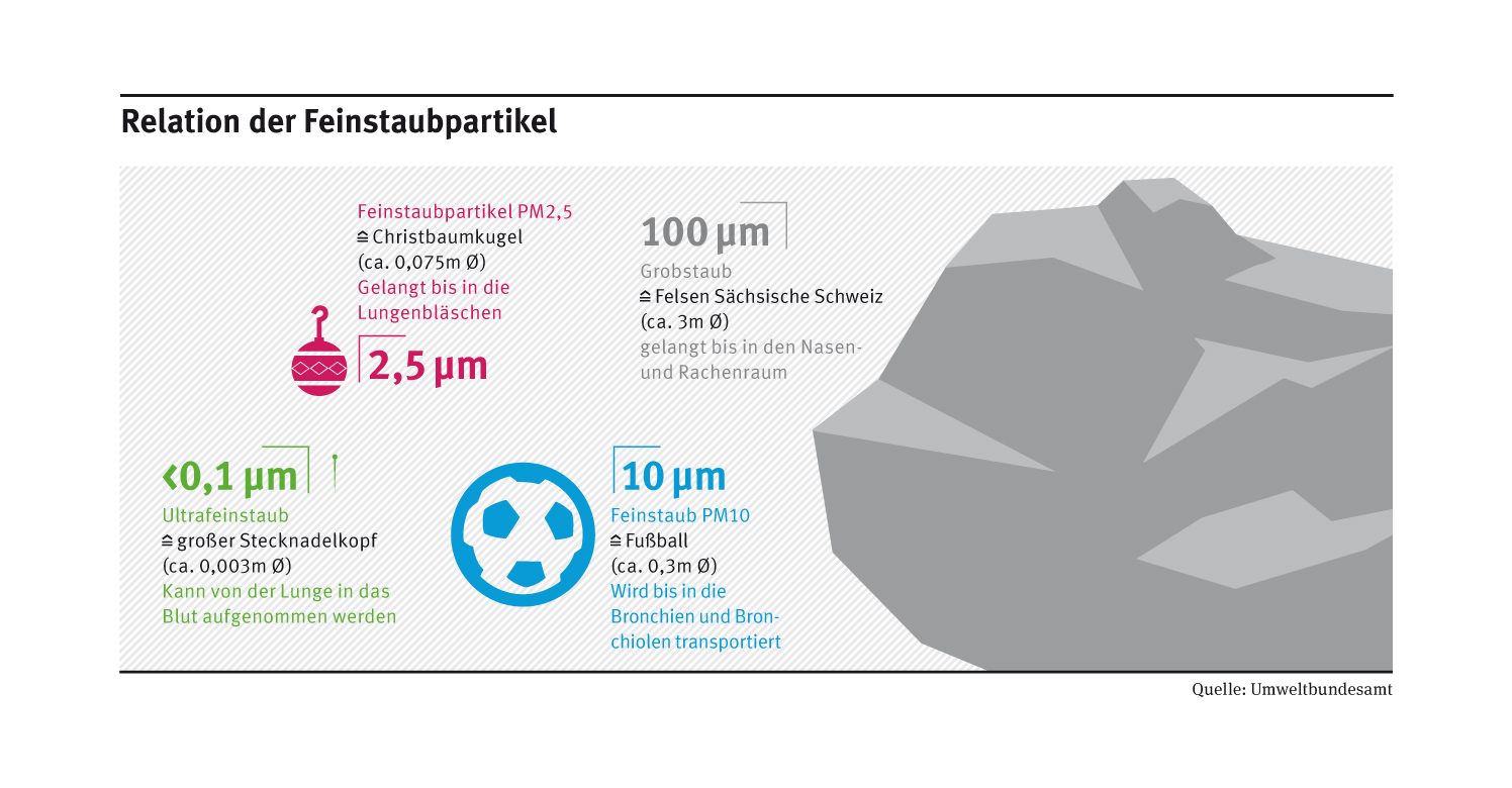 Die WHO rät bei Feinstaub der Partikelgröße kleiner als zehn Mikrometer (PM10) schon lange zu einem weitaus strengeren Luftgüteleitwert von 20 μg/m3 im Jahresmittel. Dieser wurde 2013 an fast 51 Prozent aller Messstationen in Deutschland überschritten. Thomas Holzmann: „Nach Berechnungen des Umweltbundesamtes gibt es jährlich im Schnitt rund 47.000 vorzeitige Todesfälle infolge der zu hohen Feinstaubbelastung – durch akute Atemwegserkrankungen, kardiopulmonale Erkrankungen oder Lungenkrebs. Wir plädieren für eine rasche Verschärfung der geltenden EU-Grenzwerte auf Basis der wissenschaftlichen Empfehlungen der Weltgesundheitsorganisation WHO.“