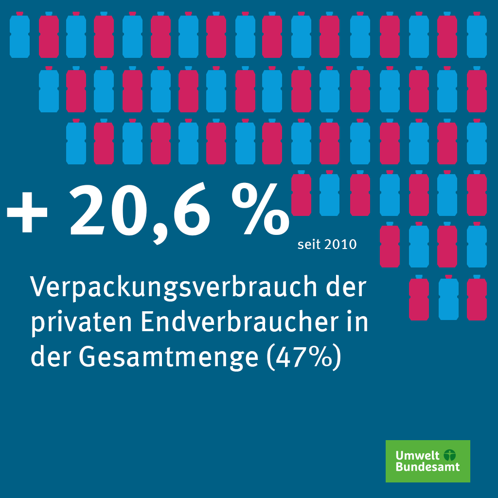 Die Ursachen für den hohen Verpackungsverbrauch sind vielfältig. Ein wesentlicher Treiber ist das Wirtschaftswachstum, denn mehr Produkte führen auch zu mehr Verpackungen. Wie sich der Verpackungsverbrauch während der Corona-Pandemie entwickelt hat, ist noch unklar. Aufgrund der geschlossenen Geschäfte und Restaurants ist allerdings abzusehen, dass vor allem mehr Serviceverpackungen für Essen und Getränke verbraucht worden sind.