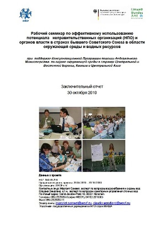 Rabotschij seminar po effektivnomu ispolsovaniju potenciala nepravitelstvennych organisaciij (NPO) I organov vlasti v stranach byvschego Sovetskogo Sojusa v oblasti okruschajuschej sredy i vodnych resursov