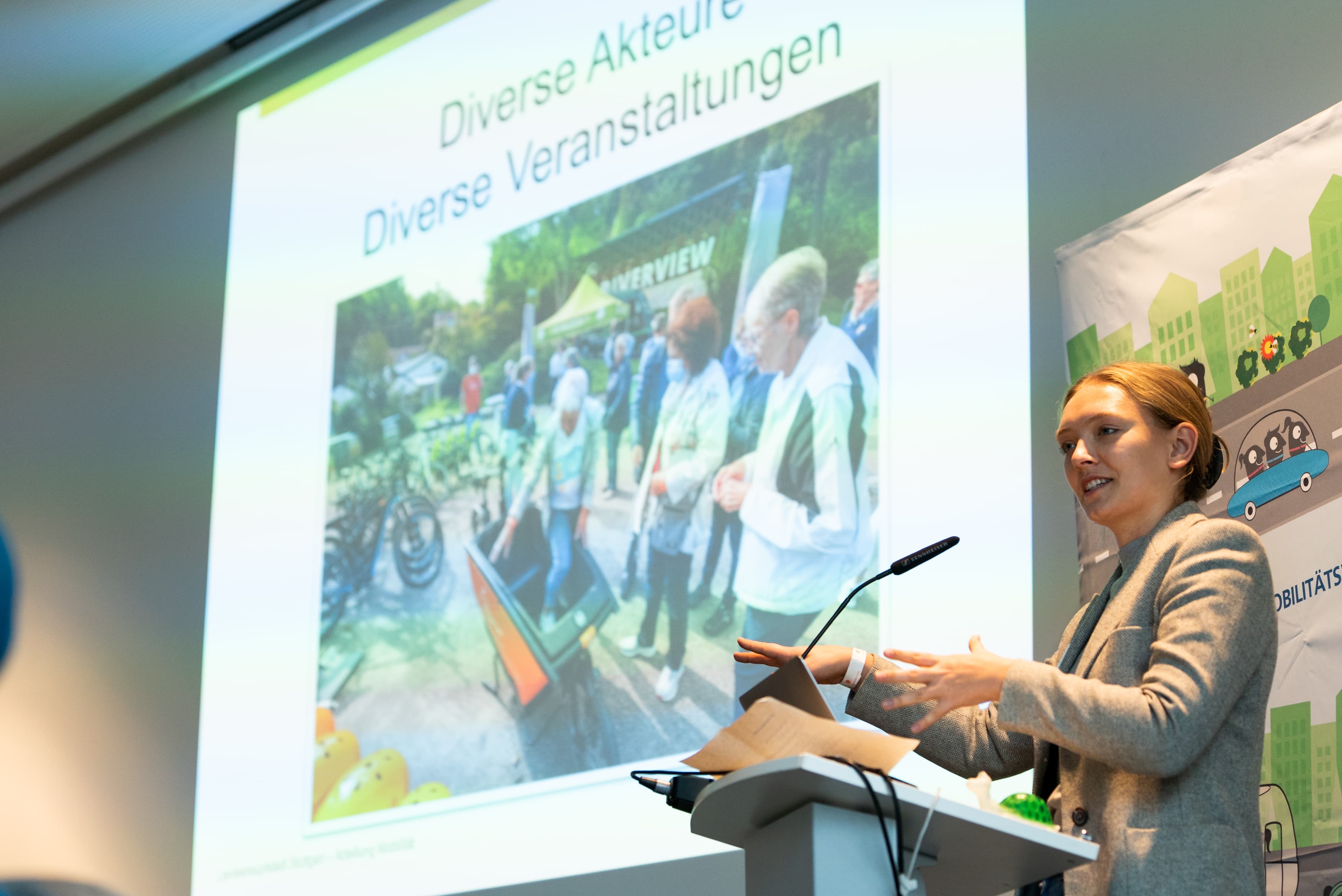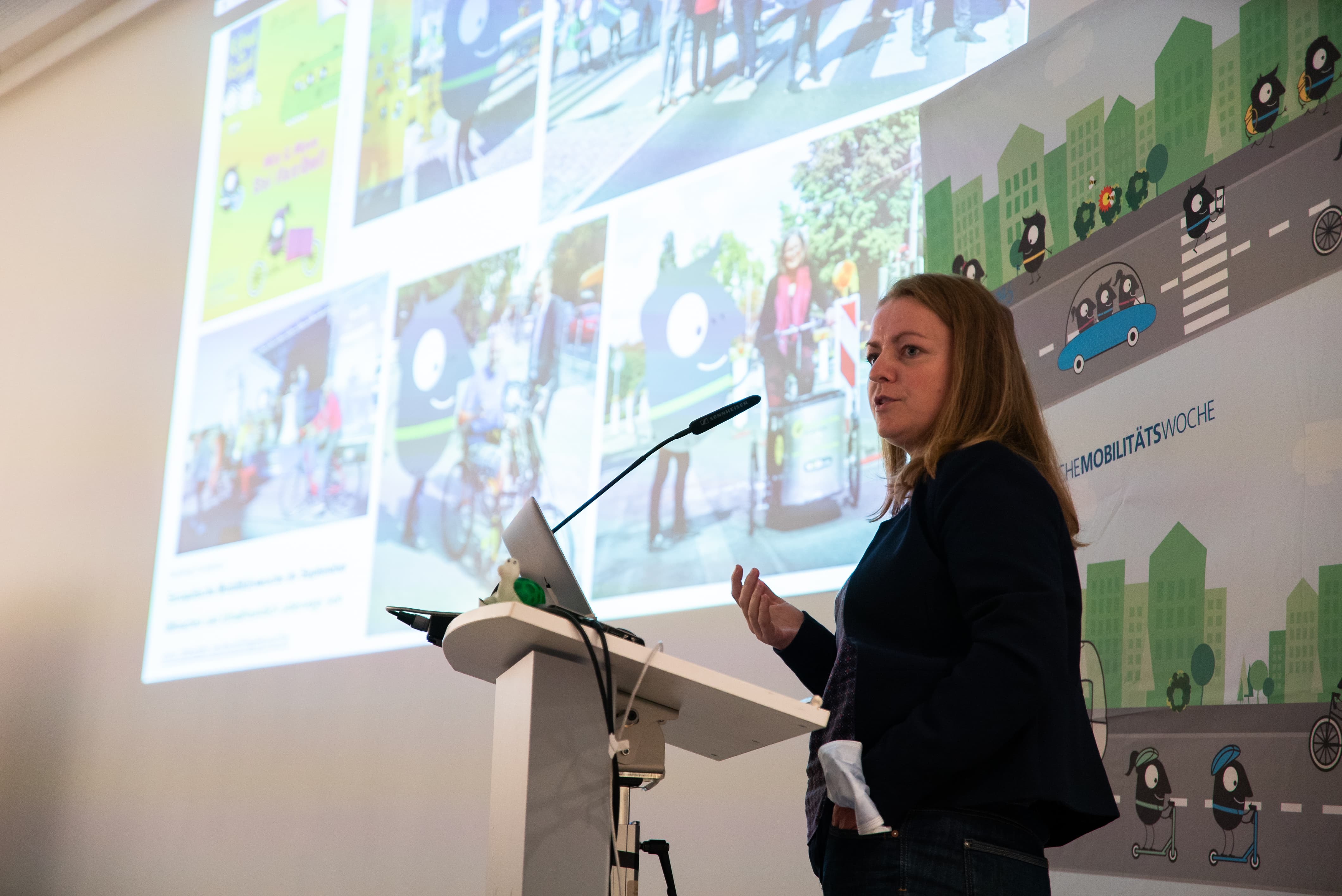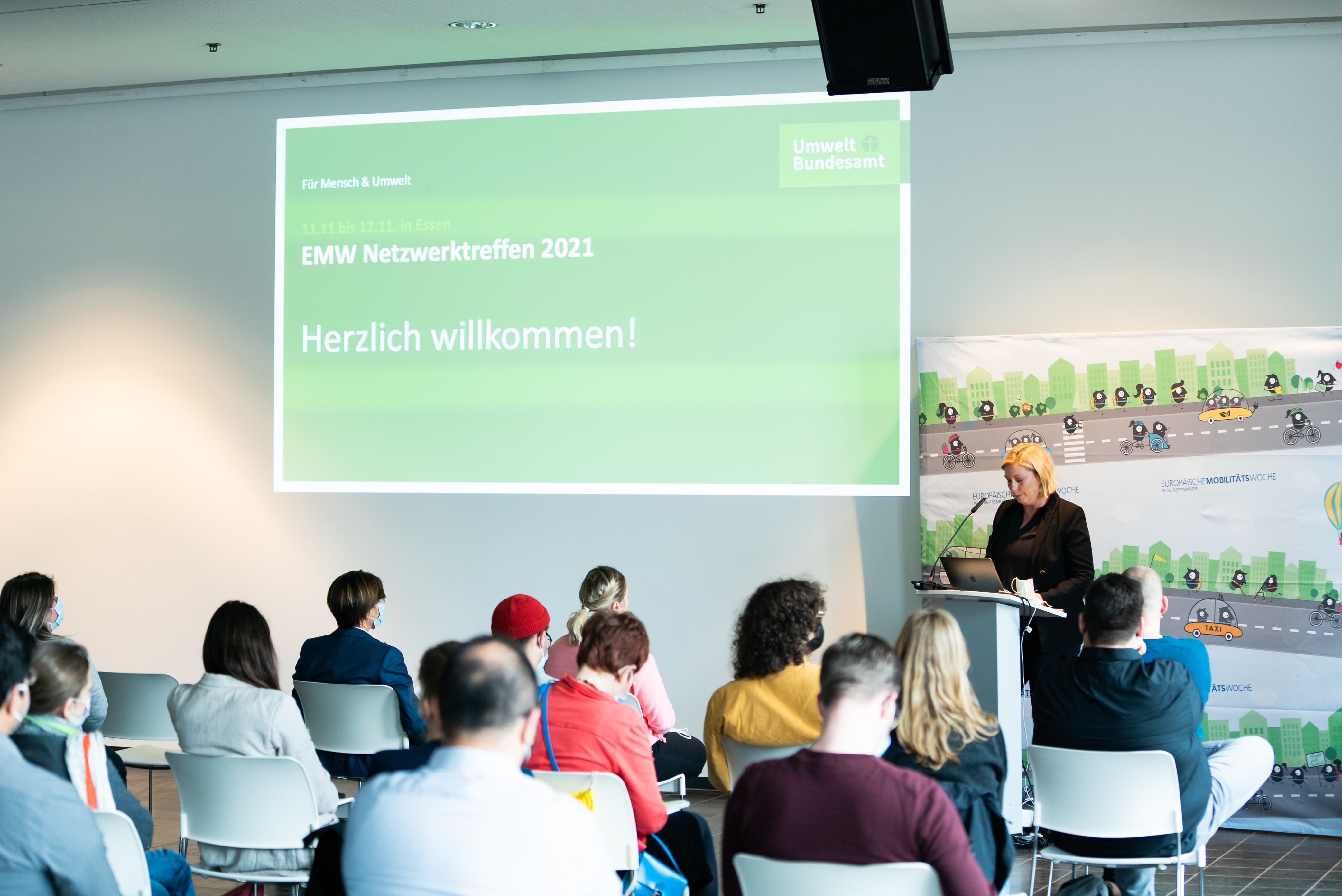 Der erste Veranstaltungstag begann mit der offiziellen Begrüßung durch die 1. Bürgermeisterin der Stadt Essen, Julia Jacob, die Beigeordnete des Geschäftsbereichs Umwelt, Verkehr und Sport der Stadt Essen, Simone Raskob, sowie der Nationalen Koordinatorin der EMW Claudia Kiso. In anschaulichen Vorträgen stellten anschließend die Landeshauptstadt Stuttgart, der Rheinisch-Bergische Kreis sowie die Stadt Essen ihre EMW-Aktivitäten 2021 vor. Die Vorträge zeigten deutlich, wie vielfältig die EMW sein kann und welche unterschiedlichen Herangehensweisen entsprechend der Begebenheiten vor Ort möglich sind. Nachfolgend gab Claudia Kiso in ihrer Präsentation einen Rück- und Überblick zur Entwicklung und zu den Aktionen der EMW 2021 in ganz Deutschland und Europa und schlug den Bogen zur EMW 2022: Das gerade von der EU bekanntgegebene Motto für die nächste Auflage der EUROPÄISCHEN MOBILITÄTSWOCHE „Besser verbunden“ mit ersten Interpretationsmöglichkeiten sowie die Pläne der Nationalen Koordinierungsstelle versprechen ein spannendes und intensives neues EMW-Jahr. Den ersten Vortragsblock rundete ein Parforce-Ritt durch die vielen Interaktionsmöglichkeiten, die Soziale Medien im Kontext der EMW bieten, ab.