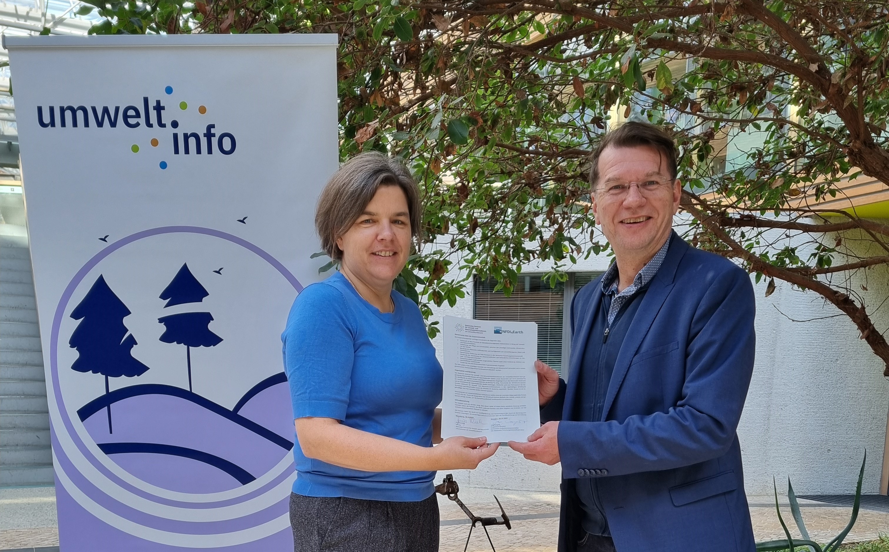 Anja Reineke, Leiterin Zentrum, und Jörg Seegert, Projekt NFDI4Earth, mit dem Letter of Intent.