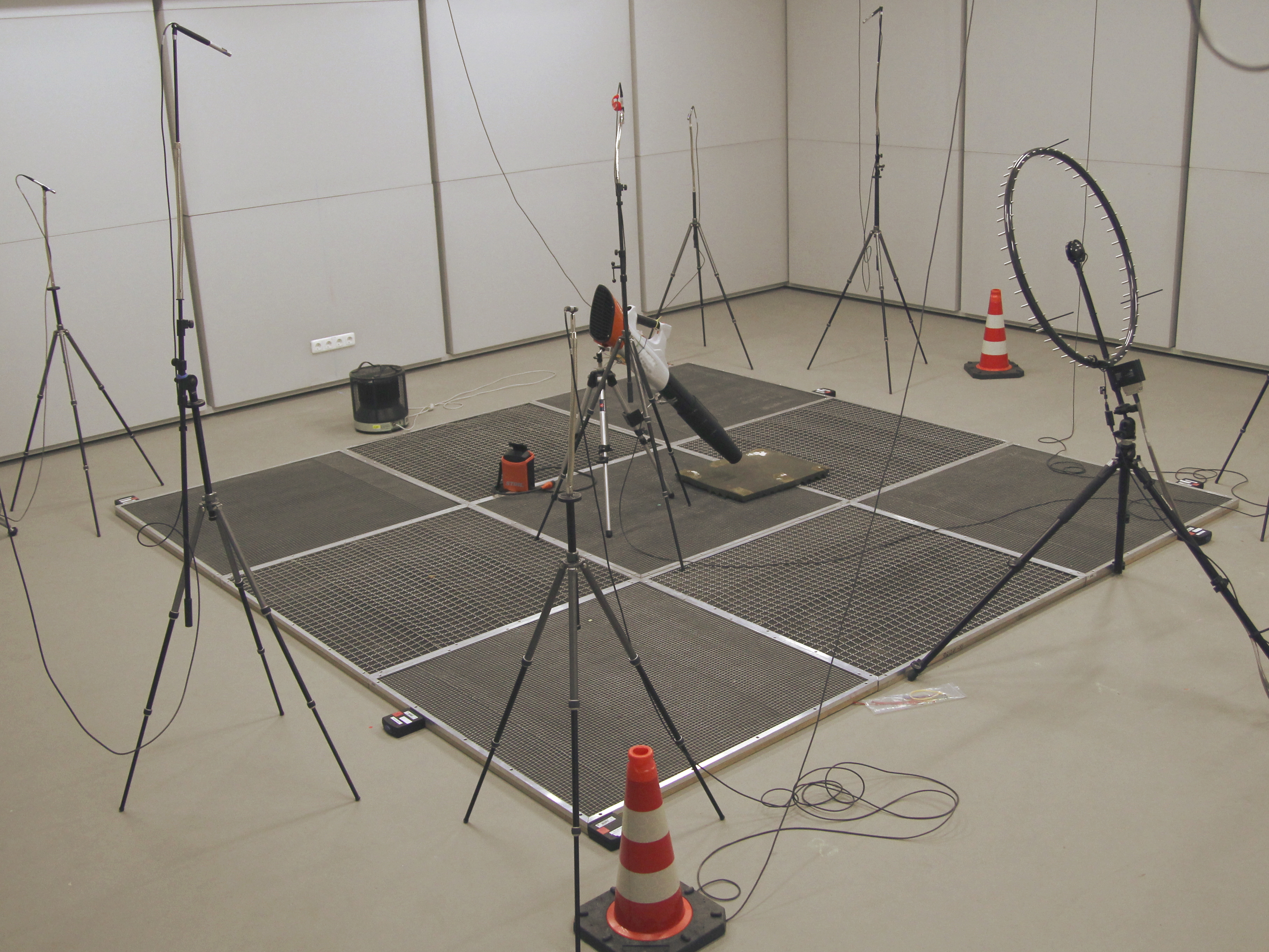 Das UBA verfügt in seinem Dienstgebäude in Dessau-Roßlau über einen Freifeld-Schallmessraum. Darin können Geräusche mit Präzisionsmikrofonen ohne Störungen und Reflexionen gemessen und bewertet werden. Hierdurch erkennen wir, aus welchen Frequenzen ein Geräusch besteht, oder wie sich der Schall ausbreitet. Im „Lärmlabor“ werden beispielsweise folgende Fragestellungen untersucht: