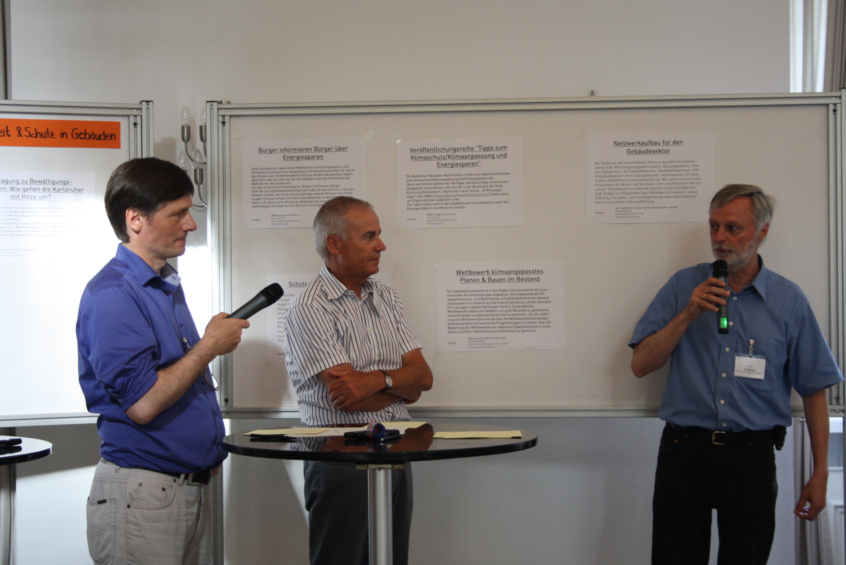 Veranstalter: Die Ideen- und Kooperationsbörse für die Region Karlsruhe wurde in enger Zusammenarbeit zwischen den Ämtern für Umwelt- und Arbeitsschutz, Gesundheit, Stadtplanung und Gartenbau sowie dem Regionalverband Mittlerer Oberrhein und IKU_Die Dialoggestalter vorbereitet und durchgeführt. Das Vorhaben wurde im Auftrag des Umweltbundesamtes (UBA) im Rahmen der Deutschen Anpassungsstrategie (DAS) ausgeführt.
