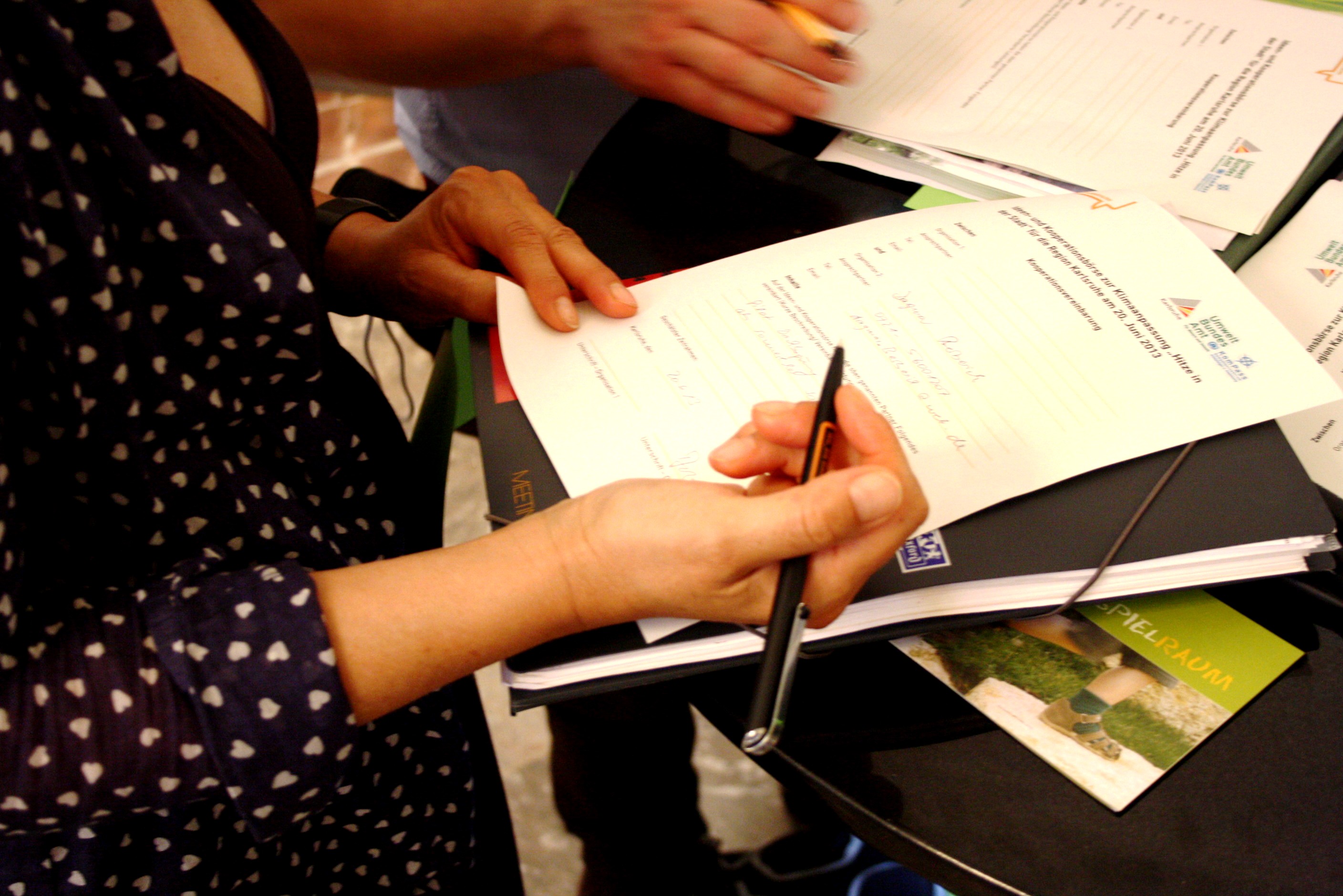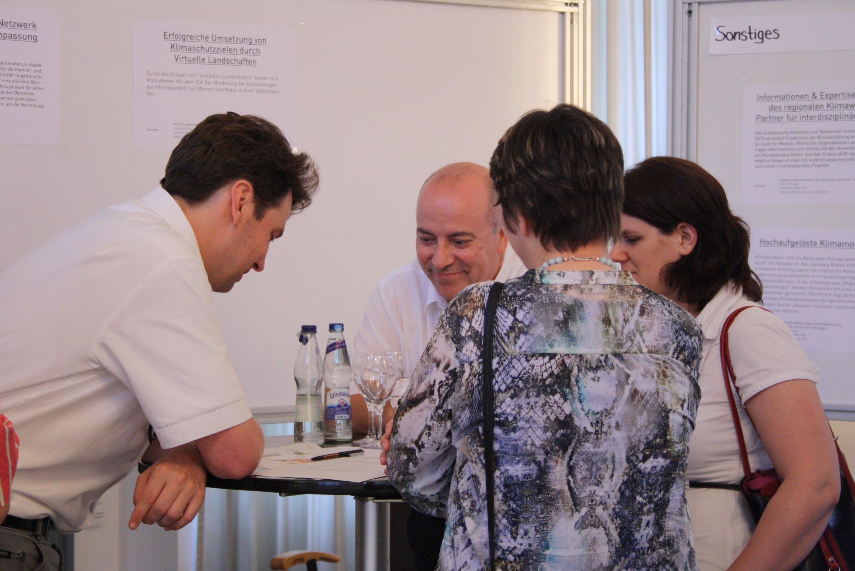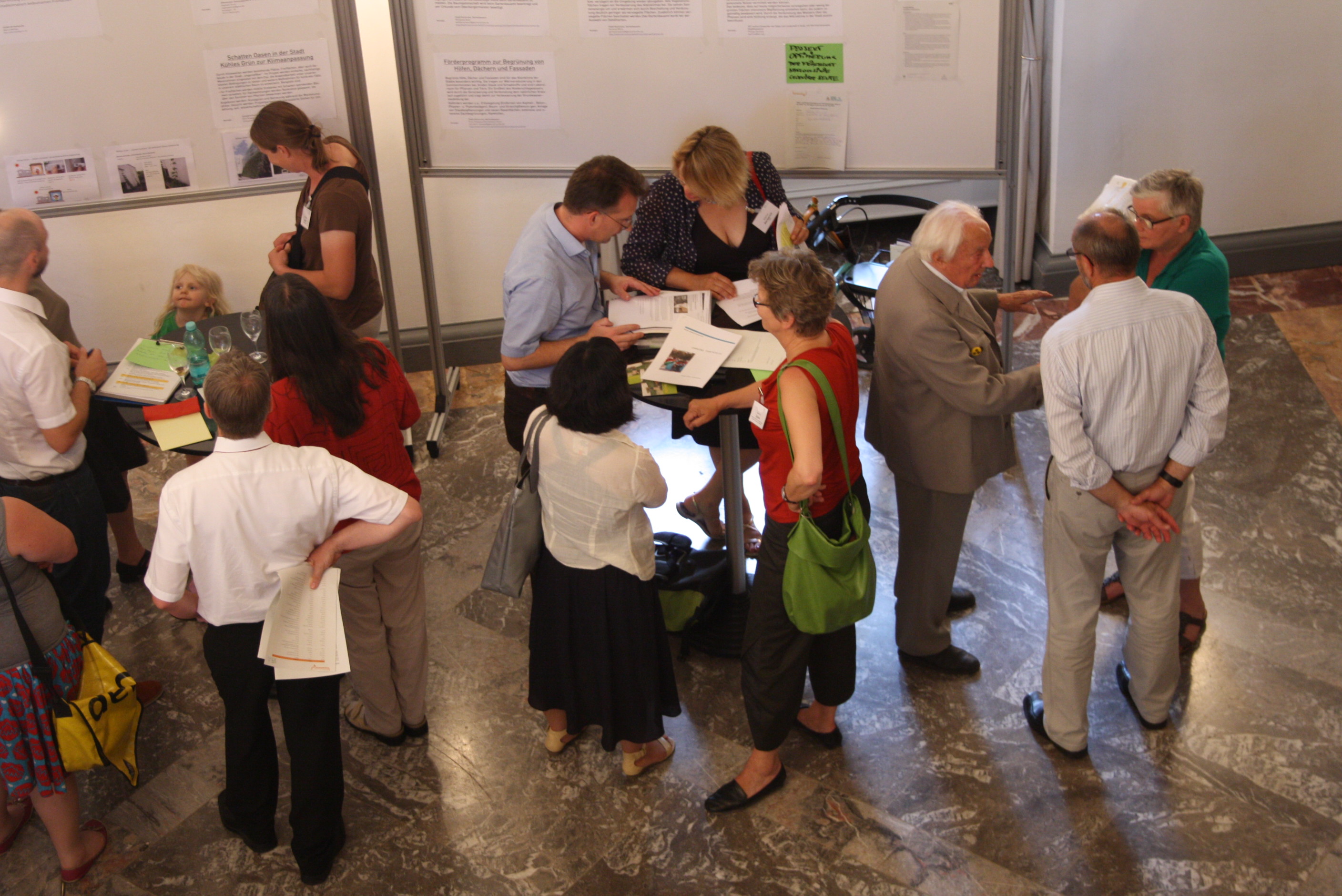 Wie werden wir privat und in unserem Arbeitsleben vom Klimawandel betroffen sein? Wie können wir uns auf diese absehbaren Veränderungen einstellen? Zu diesen Fragen veranstaltete das Umweltbundesamt am 20. Juni 2013 in Karlsruhe die Ideen- und Kooperationsbörse für die Region Karlsruhe „Hitze in der Stadt“. Rund 80 Akteur/innen aus Wirtschaft, Zivilgesellschaft, Wissenschaft und der Kommune kamen in der Durchlacher Karlsburg zusammen, informierten sich über die Auswirkungen des Klimawandels und entwickelten erste Initiativen für Anpassungsmaßnahmen. Am Ende des Tages schlossen die Teilnehmenden neun Kooperationsvereinbarungen und sammelten weitere Ideen und Vorschläge für Anpassungsmaßnahmen an den Klimawandel.