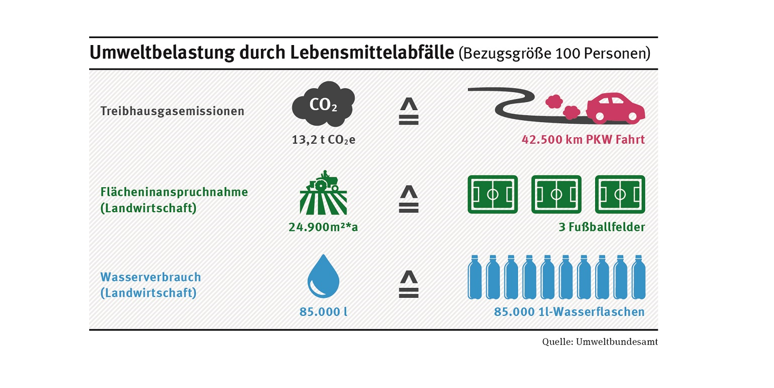 Schon kleine Maßnahmen wie eine optimale Mengenkalkulation und das bedarfsgerechte Nachlegen von Speisen an Buffets oder die Verwendung kleinerer Teller und Portionsgrößen haben nicht nur wirtschaftliche Vorteile für den eigenen Betrieb sondern in der Summe aller Betriebe eine große ökologische Wirkung und eine Vorbildfunktion für alle Akteurinnen und Akteure im Lebensmittelmarkt.