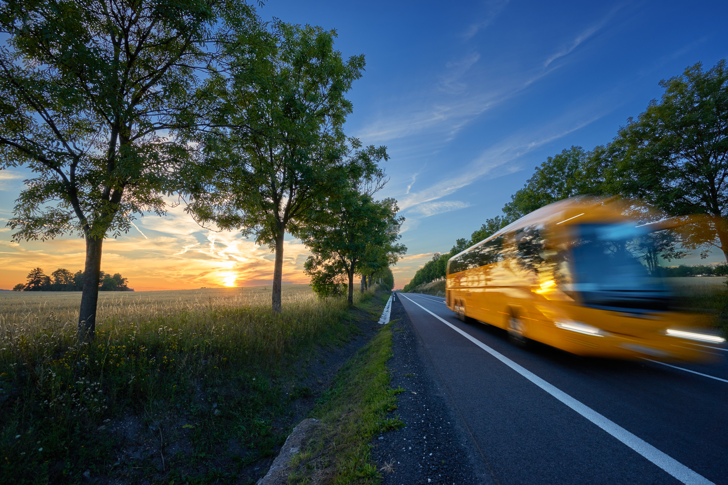 Fernbus auf einer Landstraße