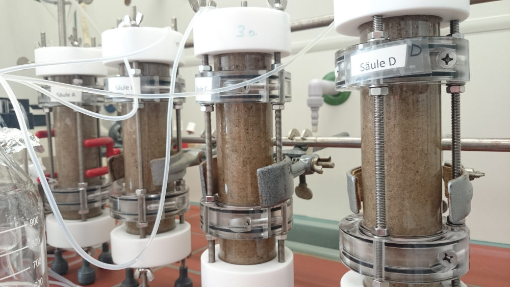 Bodensäulen, befüllt mit sandigem Bodenmaterial, zur Untersuchung des Stofftransports im Labor