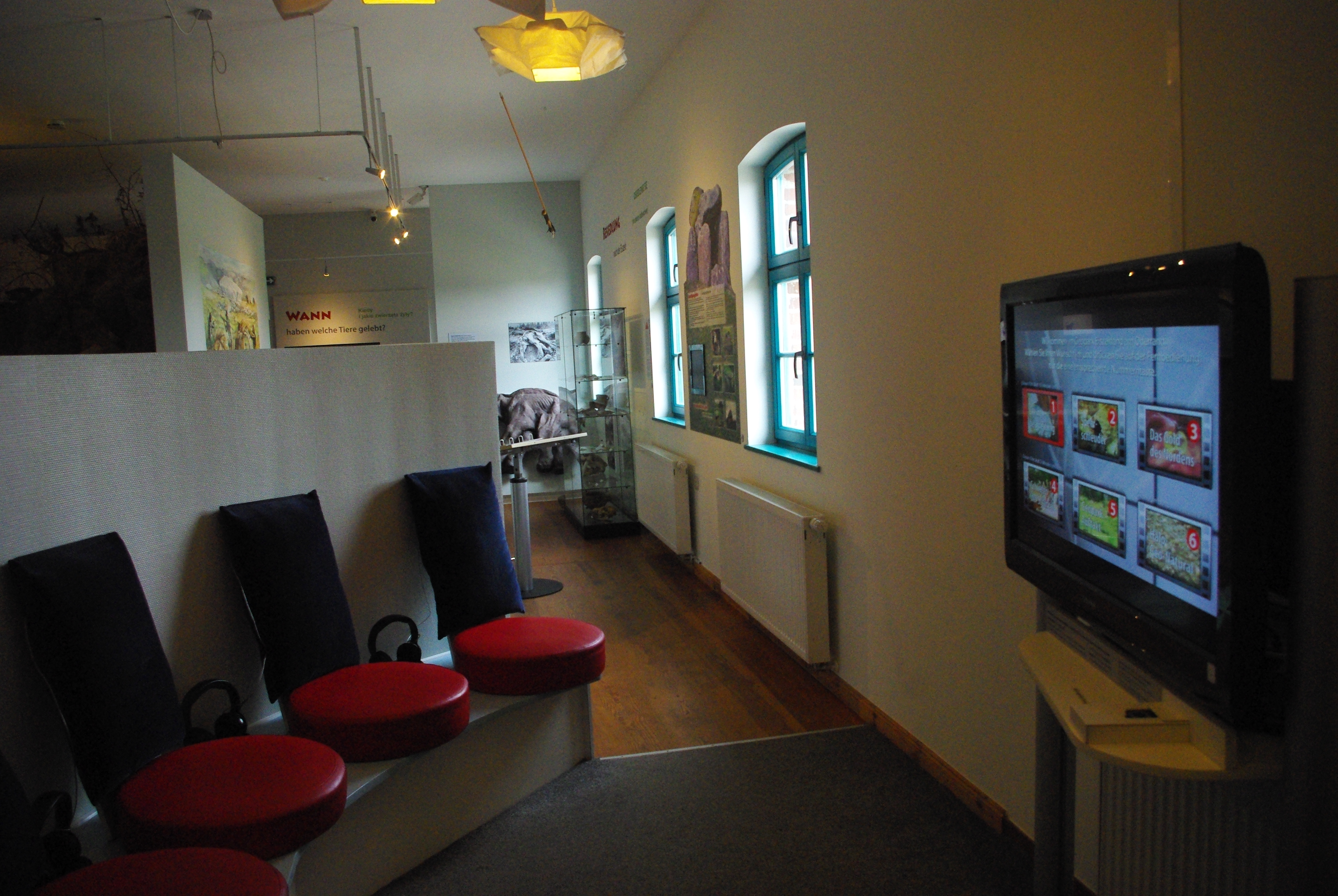 Die Reise beginnt vor ca. 11.500 Jahren im Gletschereis und endet in dem von der UNSECO 2011 als Weltnaturerbe anerkannten Buchenwald Grumsin. Auf drei Etagen Ausstellungsfläche können Sie die Entstehung der Landschaft und die der sie umgebenden Natur erleben. Mit Modellen, interaktiver Technik und anschaulichen Erklärungen bietet die Ausstellung die Möglichkeit, Eiszeit zu erfahren. Den Auftakt für die Reise in die Vergangenheit, als Brandenburg noch unter dickem Inlandeis lag, bildet der Nachbau eines Gletschertunnels mit den Geräuschen von knackendem Eis, aufgenommen in einem noch heute aktiven Gletscher. Ein weiteres Themengebiet sind die Geschiebe. Hier erfahren Sie, etwas zu Gesteinen in unserer Region, wie diese entstanden und welchen Weg sie genommen haben. Manch einer dieser Steine birgt ein kleines Geheimnis in sich: eingeschlossene Tiere- und Pflanzen. In der Kinoecke beleuchtet der Film „Eiszeiten in Brandenburg“ die Wirkungen und Hinterlassenschaften der Eiszeiten. Nachdem das Eis sich vor ca. 11.600 Jahren zurückgezogen hat und dabei die reichhaltige Seenlandschaft des Nordens prägte, siedelten hier die Menschen. Darüber berichtet der nächste Teil der Ausstellung. Doch nicht nur Menschen auch Mammuts und andere eiszeitliche Tiere. Mehr und Mehr hat sich die Natur die vom Eis freigegebenen Flächen zurückerobert. Eine große Artenvielfalt konnte sich in den letzten Jahrtausenden hier entwickeln. Auch die Biodiversität ist ein Thema dieser Ausstellung.