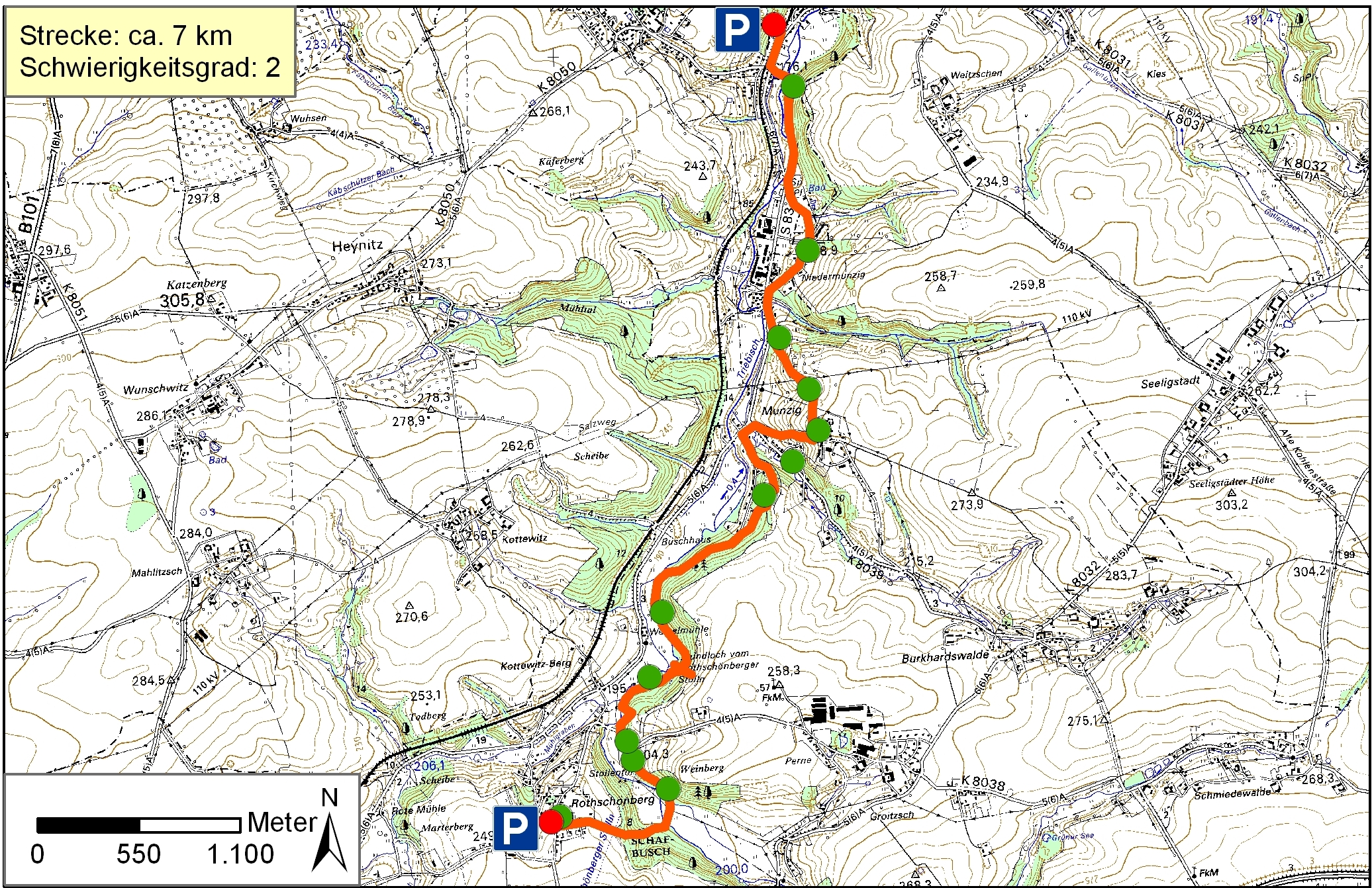 Entlang der Triebisch zwischen Rothschönberg und Miltitz verbindet der Geopfad Triebischtal auf 7 km Länge eine Auswahl der interessantesten geologischen und bergbauhistorischen Punkte des Nossen- Wilsdruffer-Schiefergebirges. Durch steil stehende Schichten können entlang des Tales Sättel und Mulden durchwandert werden, ein ständiger Wechsel des Gesteins wird geboten.