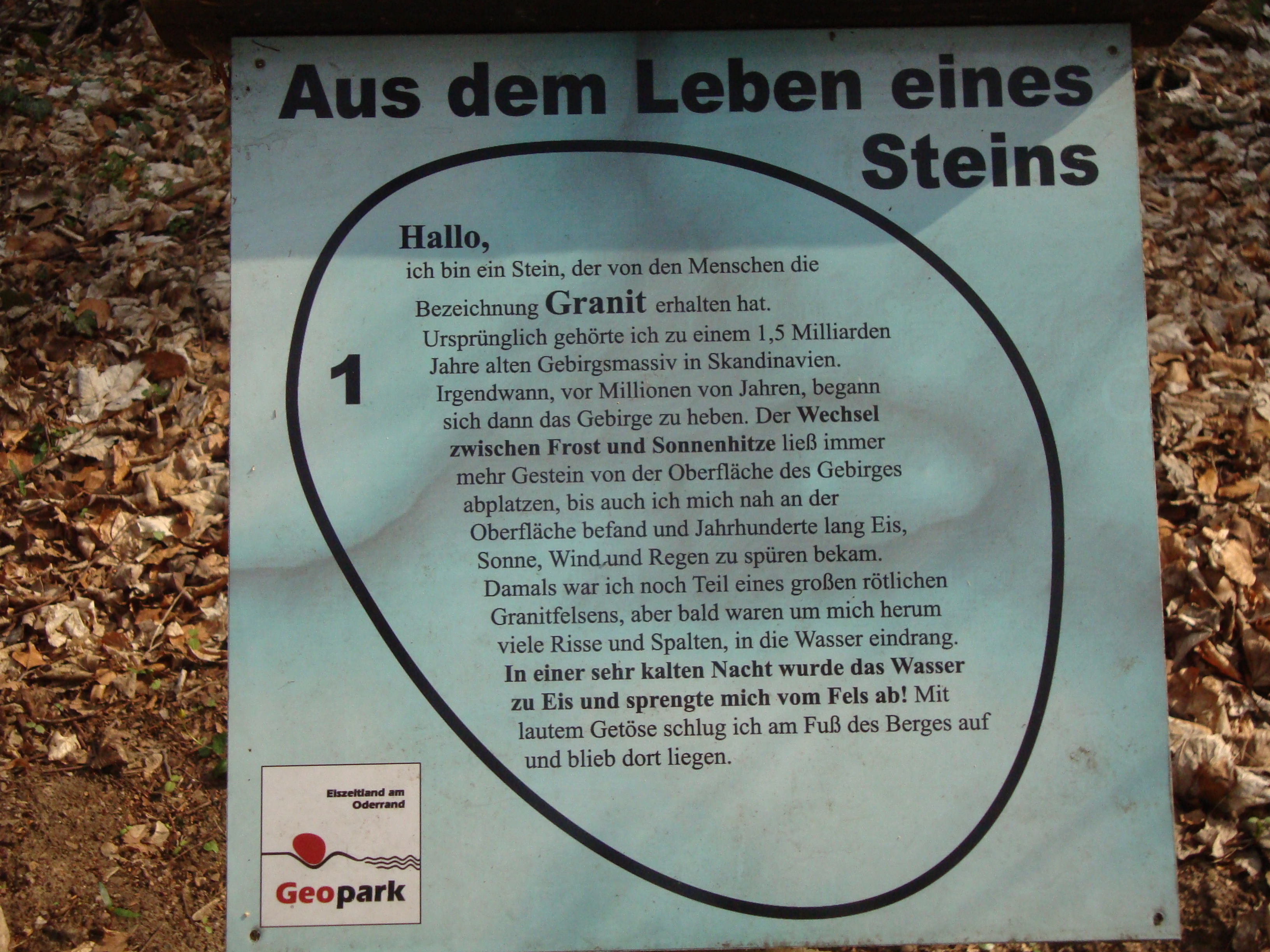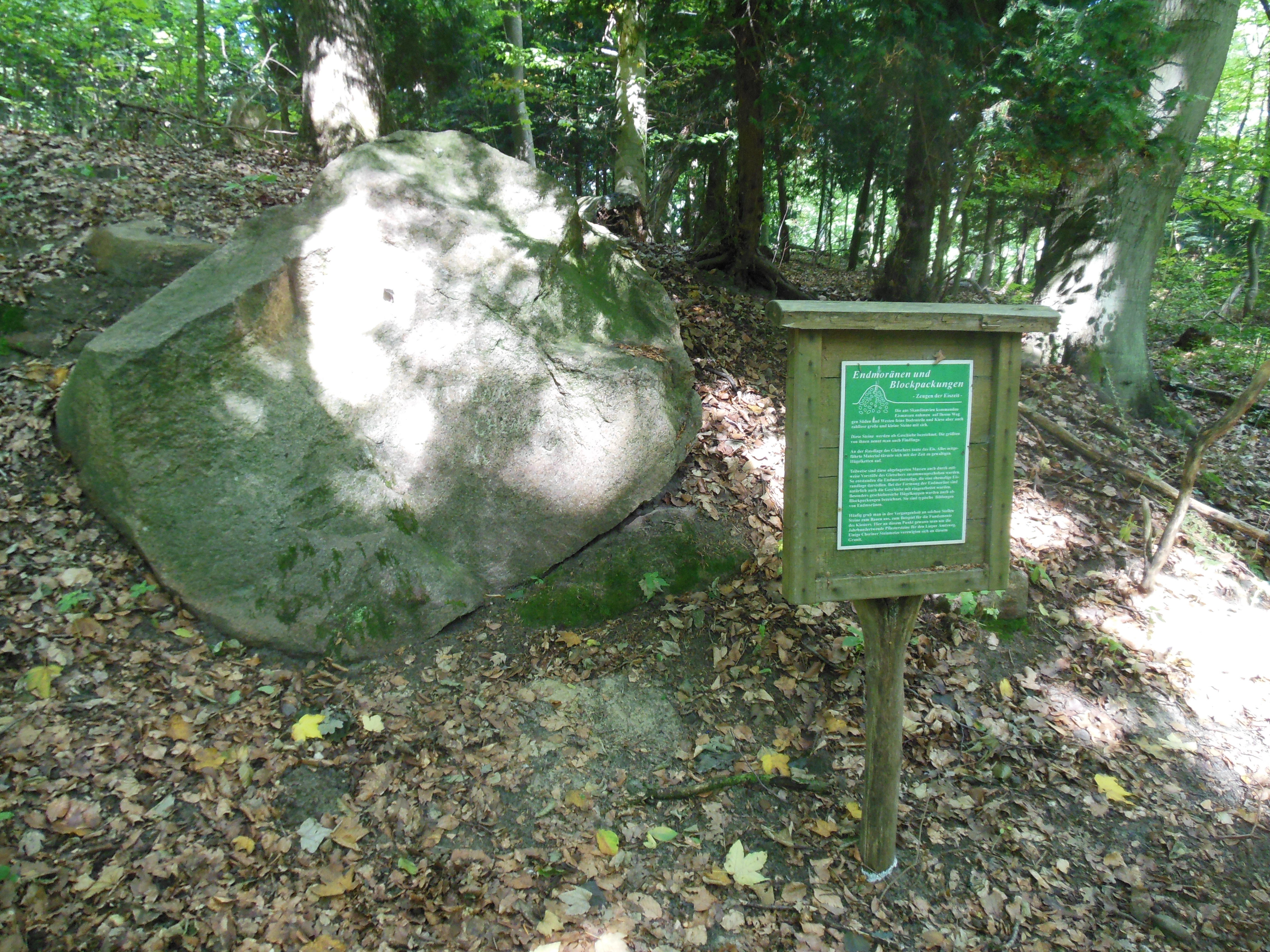 Auf der gegenüberliegenden Straßenseite zum Kloster Chorin sind am Weinberg in Chorin auf dem bereits bestehenden Waldlehrpfad Elemente eines geologischen Lehrpfades integriert worden.
