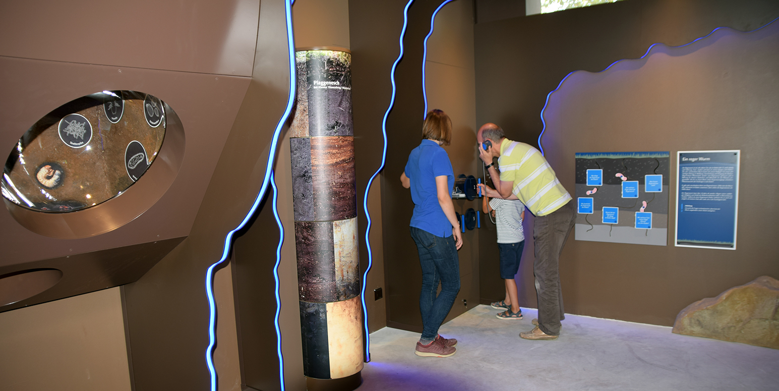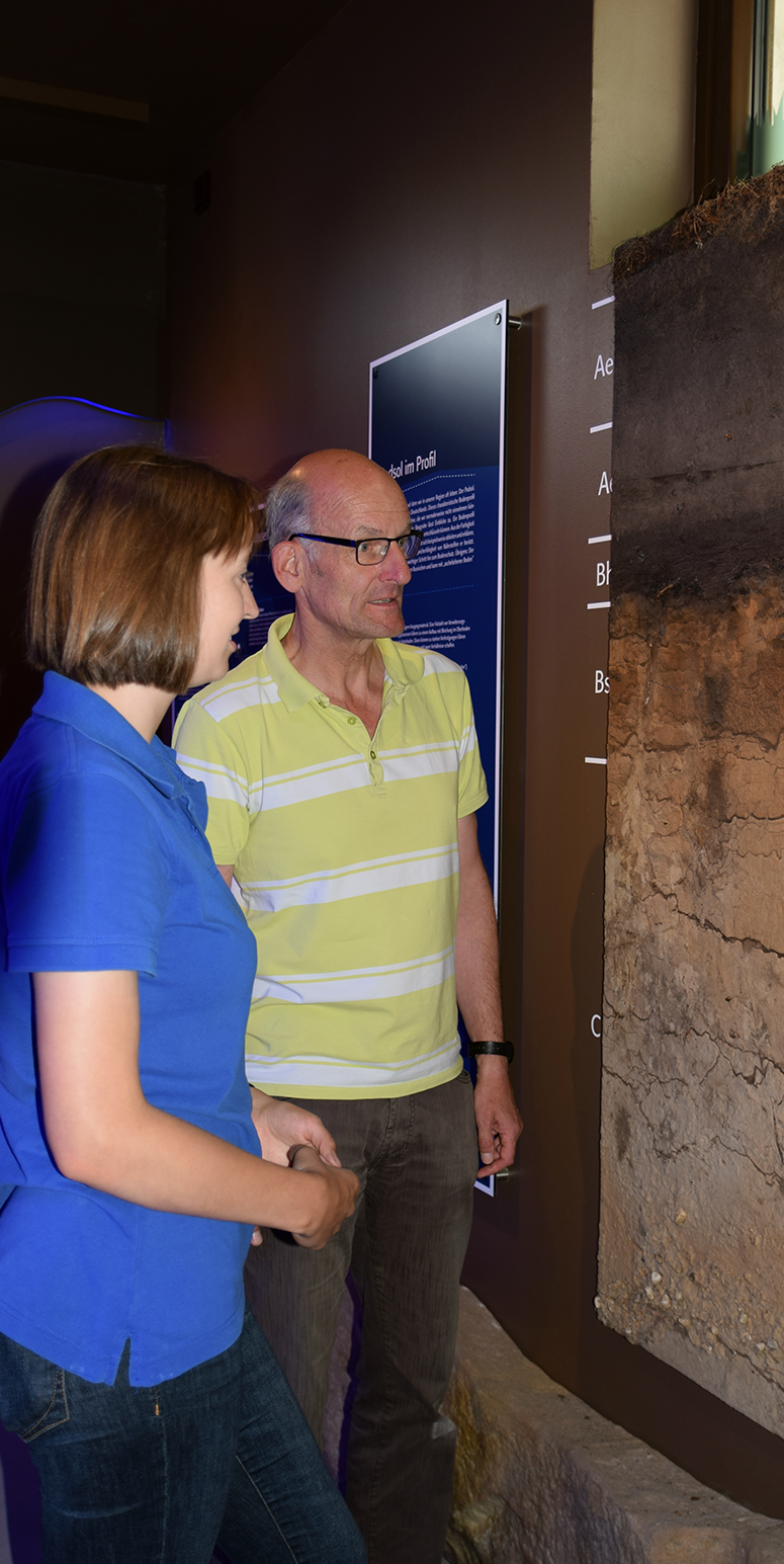 In einem Raum, in dem sich der Besucher wie „unter der Erde“ fühlt, werden mit verschiedenen Infographiken und Exponaten die Zusammenhänge und Auswirkungen des menschlichen Handelns im Umgang mit Boden und Wasser verdeutlicht. Besucher können in die Welt der Bodenlebewesen eintauchen. Ein (Lack-)Bodenprofil aus der Umgebung kann erfühlt werden. Eine drehbare Bodensäule verdeutlicht weitere typische Böden aus der Region. Spielerisch können Aufgaben und Wirkungsweisen eines Regenwurms erlebt werden. Szenisch und mit einer Audiostation ergänzt werden alltagsbezogene Tipps zum Wassersparen gegeben. Ansprechende Infographiken erläutern den Wasserkreislauf sowie Gefährdungen für Boden und Wasser.