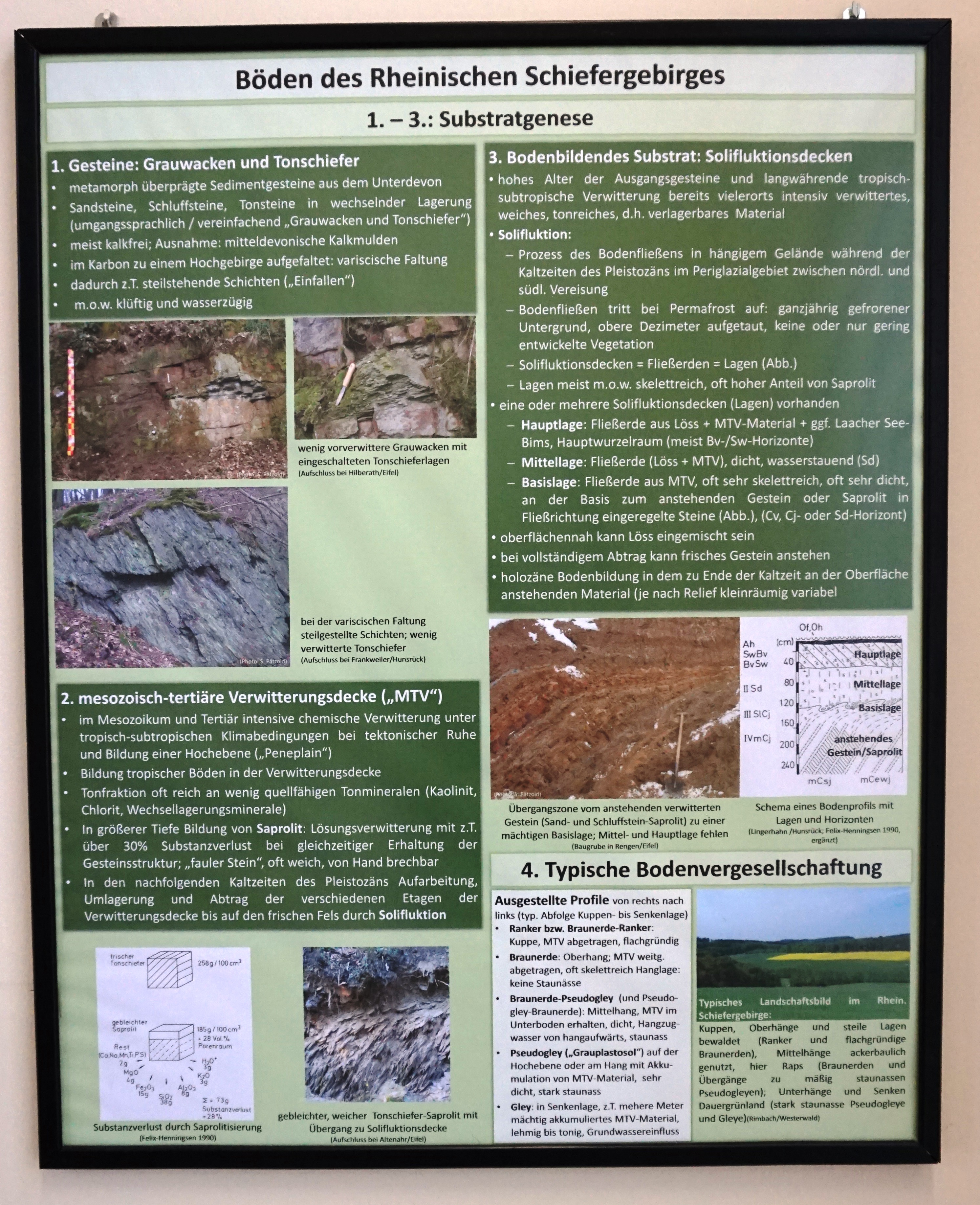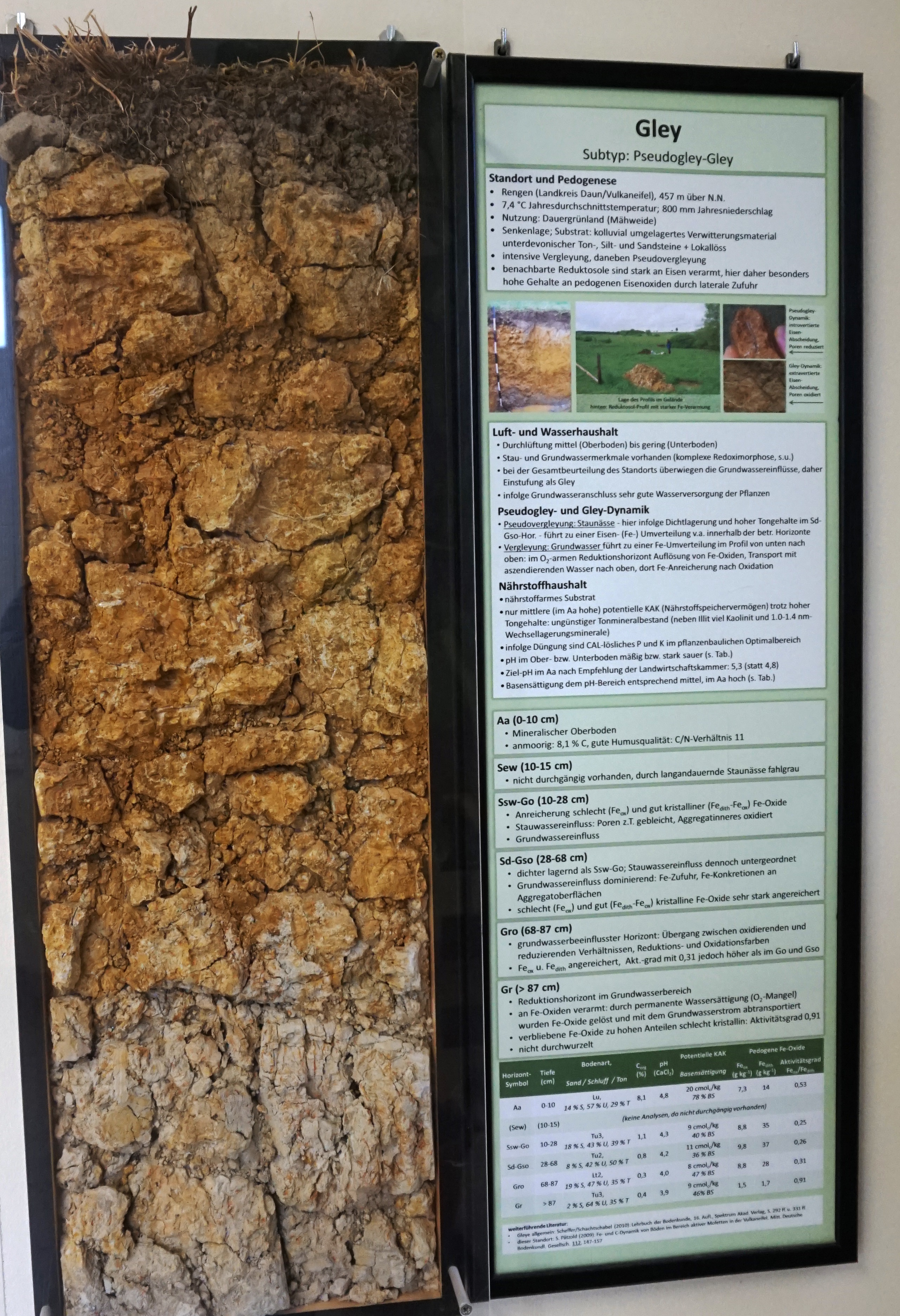 Das Institut für Nutzpflanzenwissenschaften und Ressourcenschutz (INRES – Bereich Bodenwissenschaften) der Rheinischen Friedrich-Wilhelms-Universität besitzt eine Sammlung von ca. 80 Lackprofilen von Böden, viele davon aus der Umgebung von Bonn. Im Treppenhaus sind u.a. Kolluvisole, Parabraunerden, Pseudogleye, Podsole, Gleye und Ranker ausgestellt. Alle Böden werden ausführlich erklärt.