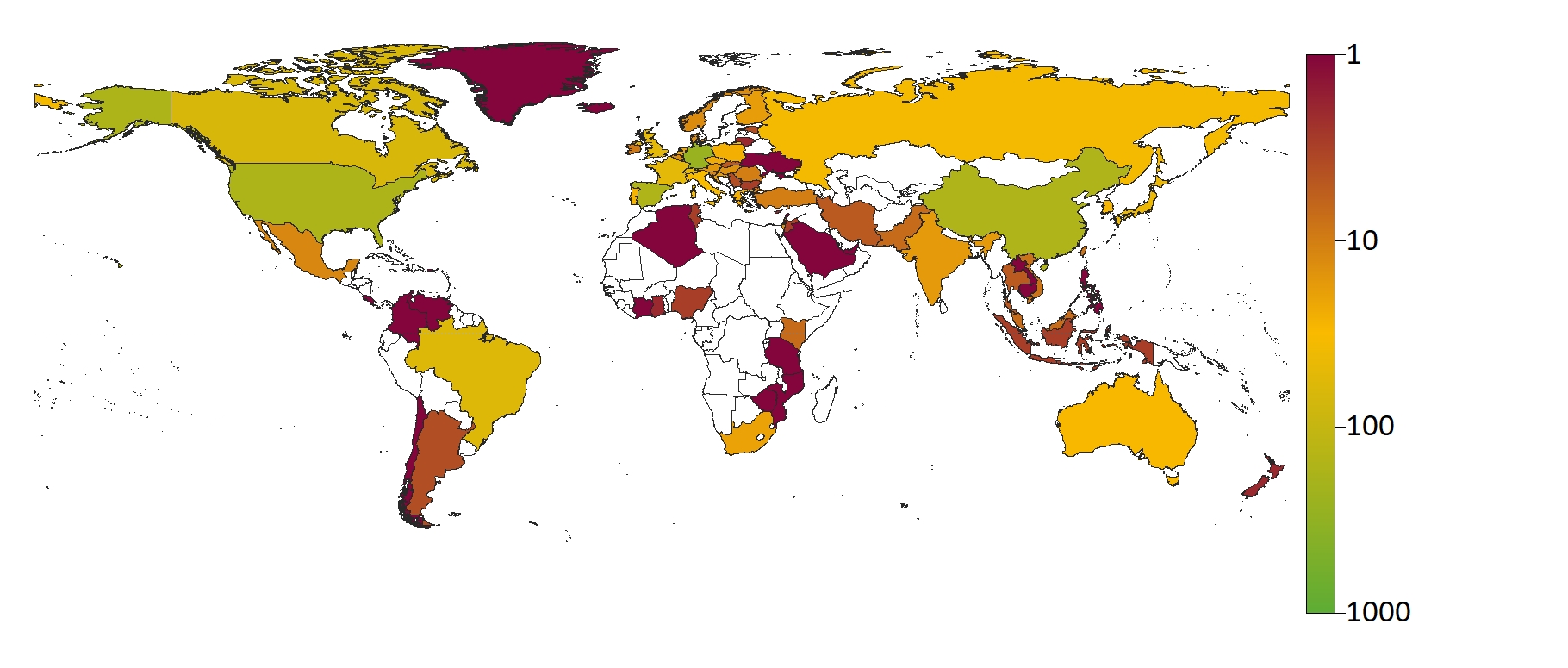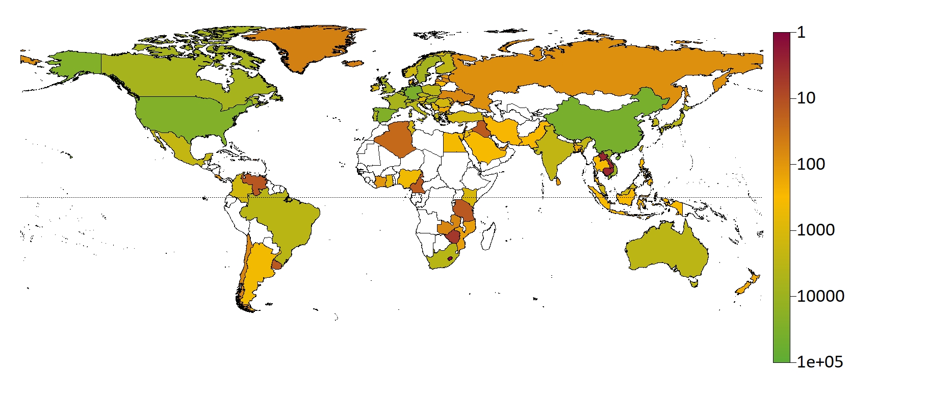 Die geografische Lage der Probenahmeorte wurde entsprechend der regionalen UN-Gruppen kategorisiert (Africa Group; Asia-Pacific group; Eastern Europe group (EEG); group of Latin American and Caribbean States (GRULAC); Western Europe and Others Group (WEOG), including North America, Australia, and New Zealand).