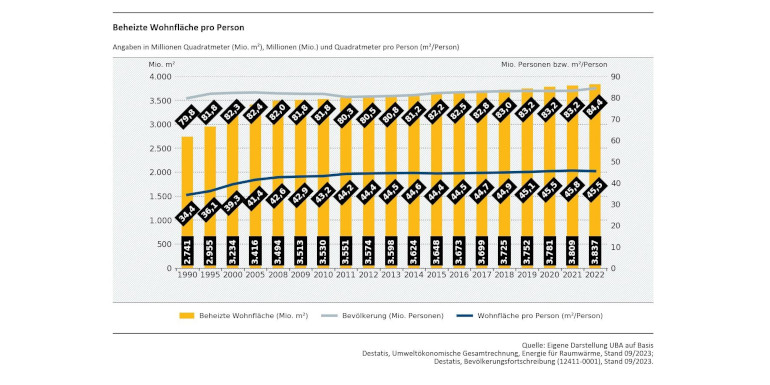 Wohnfläche steigt kontinuierlich und macht Effizienzsteigerungen teilweise zunichte