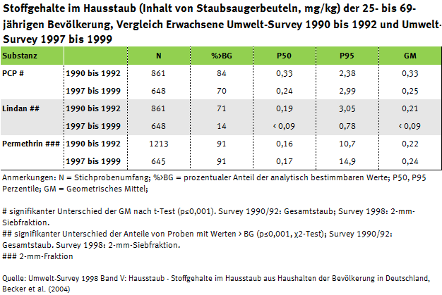 Seit der ersten Deutschen Umweltstudie zur Gesundheit, GerES 1985-1986 (ehemals Umwelt-Survey von 1985 bis 1986) ist die Belastung der Menschen in Deutschland mit den meisten Schadstoffen zurück gegangen. Nach wie vor sind jedoch potenziell schädliche Substanzen im Umlauf, deren zunehmende Verbreitung kritisch beobachtet werden muss oder deren Wirkung auf den Menschen und die Umwelt nicht abschließend geklärt ist. In den vergangen Jahren rückten vor allem Weichmacher, die wie Hormone wirken können, und allergieauslösende Substanzen in den Fokus. Auch Alternativen zu Weichmachern und Kosmetik-Inhaltsstoffe gewinnen an Bedeutung. Die Deutsche Umweltstudie zur Gesundheit hilft, die Relevanz neuer Stoffe für die Umwelt und den Menschen zu klären und Schadstoffquellen zu identifizieren.