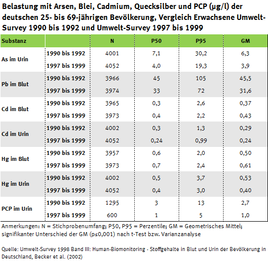 Eine Auswahl zentraler Ergebnisse aus fast 30 Jahren Deutsche Umweltstudie zur Gesundheit (ehemals Umwelt-Survey genannt):