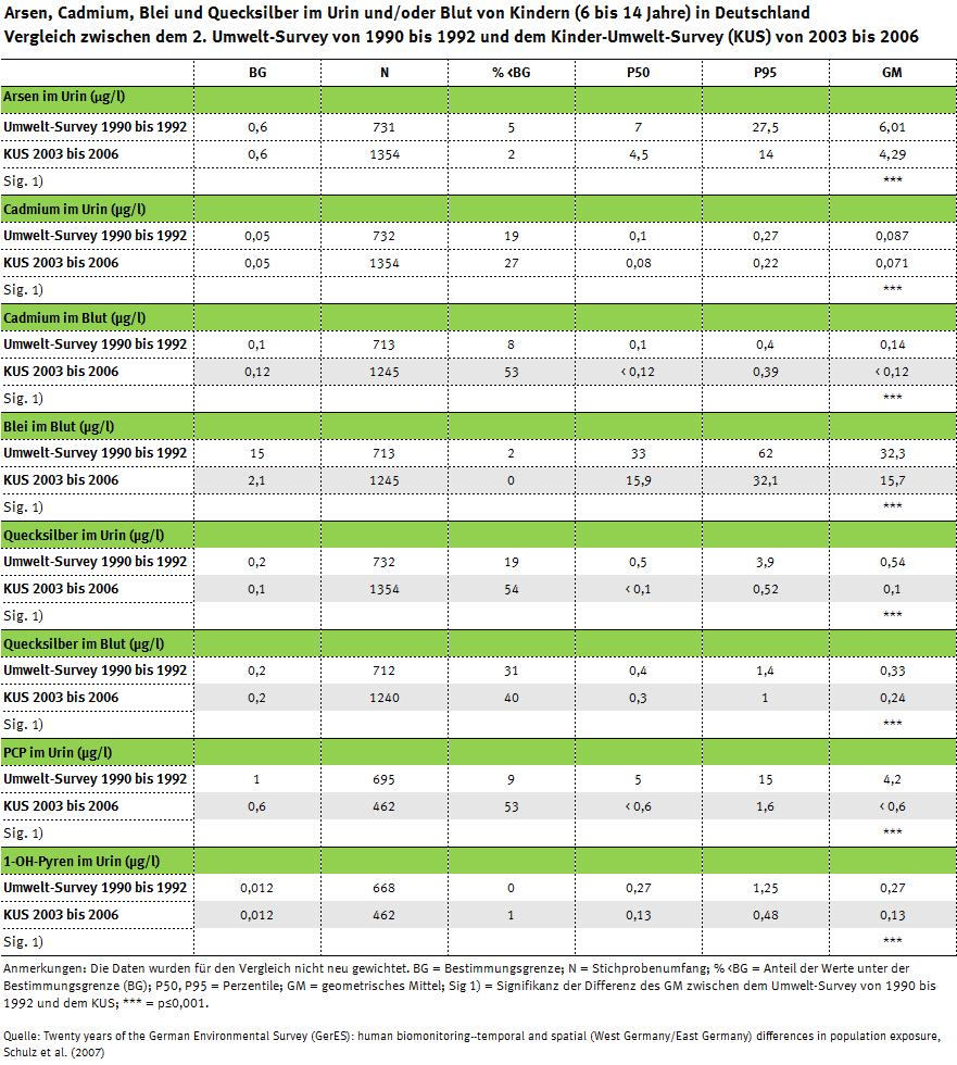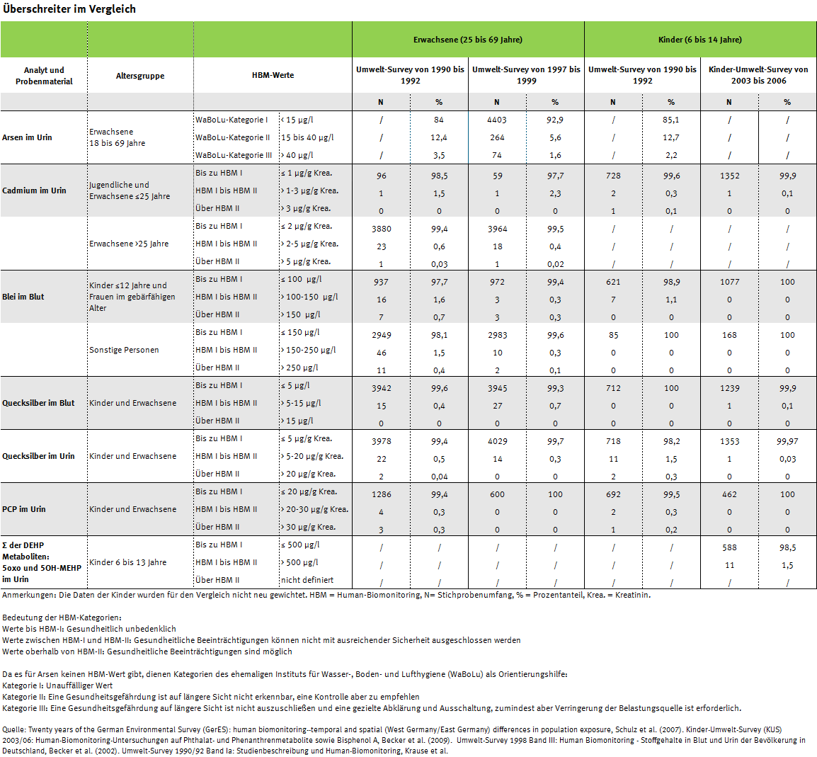 Viermal Deutsche Umweltstudie zur Gesundheit auf einen Blick