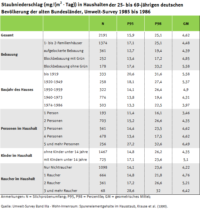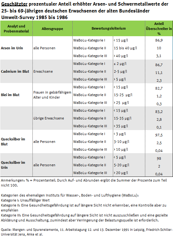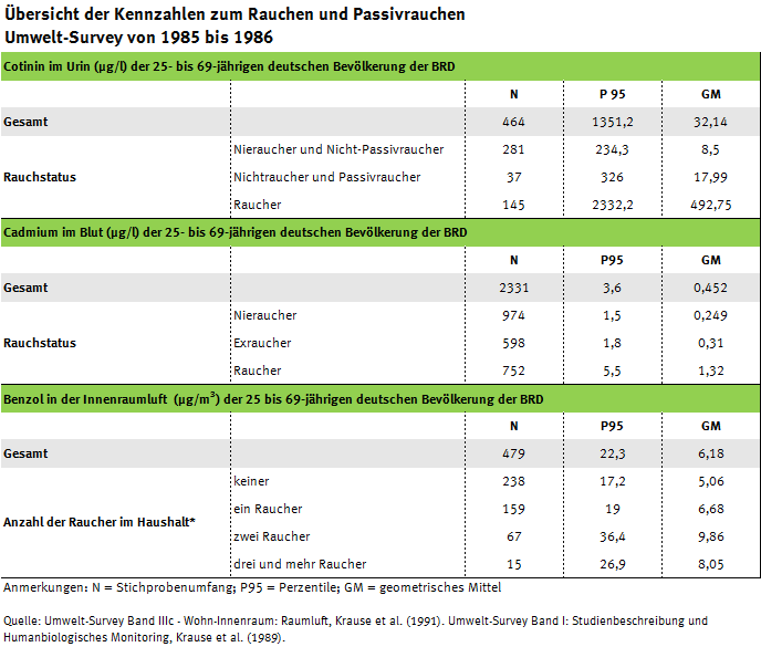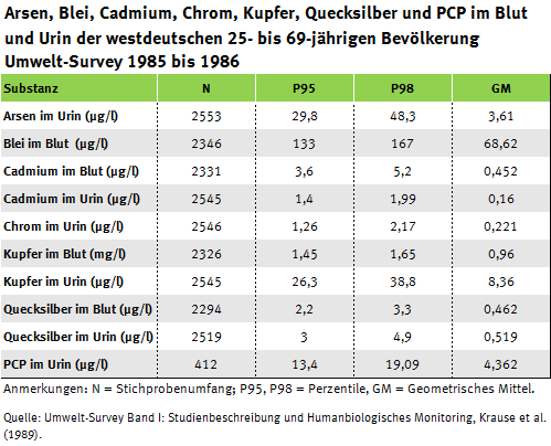 *Zu Zeiten des Umwelt-Surveys 1985 bis 1986 lag die Verantwortung für den Umwelt-Survey noch beim Institut für Wasser-, Boden- und Lufthygiene (WaBoLu) des damaligen Bundesgesundheitsamtes. Im Folgenden wird dennoch vom UBA, in welches das WaBoLu 1994 integriert wurde, als ausführende Behörde die Rede sein.