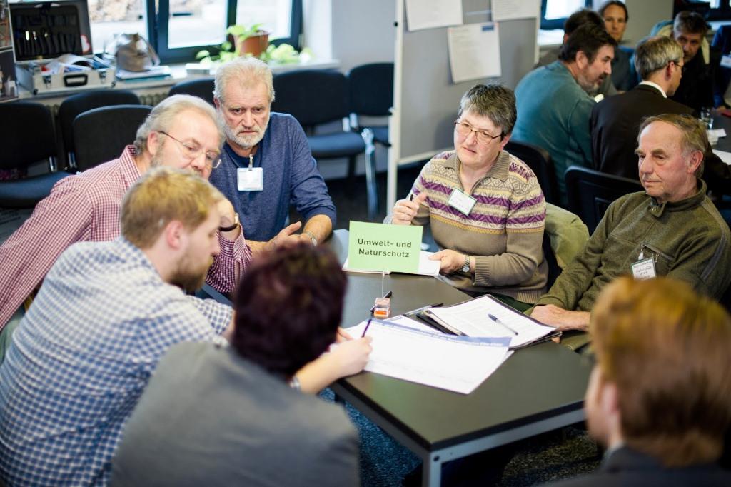 Um die Teilnehmenden für die Börsen zu gewinnen, hat sich das Telefon als wichtigste Quelle erwiesen: „Wir haben jeweils vor Ort mit Vertretern der Kommunen zusammengesessen und Kontakte von Ansprechpartnern gesammelt“, erklärt Andreas Kleinsteuber. Unternehmen, Vereine, Dezernate, Landwirte – je nachdem, was und wer in der Region wichtig war. „Dann haben wir telefoniert und eingeladen. Die persönliche Ansprache war vielen wichtig und häufig erfolgreich.“ Flankiert wurde diese Art der Werbung durch klassische Wege der Information: Poster, Plakate, Infoflyer und einen Newsletter. Ein aktiver Unterstützerkreis ergänzte die Arbeit: „Das waren die einzelnen Abteilungen der Stadt, die ihre Region und die Aktiven kennen“, sagt Kleinsteuber. Dazu gehören aber auch große Firmen als wichtige Zugpferde der Region und Institutionen, die über ein entsprechendes Netzwerk verfügen, zum Beispiel die Handwerkskammern oder IHK, die Nachrichten in die angeschlossenen Betriebe weitertragen. Begleitet wurde die Organisation der Ideen- und Kooperationsbörsen durch einen eigenen Internetauftritt www.kooperation-anpassung.de. Dort wurden vor den Veranstaltungen Informationen bereitgestellt und erste Projektideen, Angebote und Gesuche für Kooperationen veröffentlicht. Nach den Börsen wurden auf diesem Weg vereinbarte Projektideen sowie Namen und Kontaktdaten der Ansprechpartner der Öffentlichkeit zugänglich gemacht.