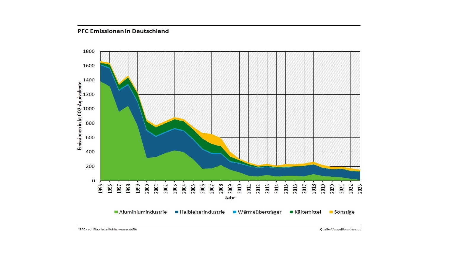 Vollfluorierte Kohlenwasserstoffe (PFC) werden vielfältig eingesetzt. In Deutschland sanken ihre Emissionen in den letzten Jahren. Die gemessenen atmosphärischen Konzentrationen steigen aufgrund der Langlebigkeit weiter. PFC gehören zu den PFAS. Derzeit wird ein Beschränkungsvorschlag zu den PFAS unter REACH diskutiert. Ein Update des Beschränkungsvorschlags wurde am 20. August 2025 von der ECHA veröffentlicht. Grundsätzliche Informationen zu PFC, Anwendungsbereiche und aktuelle Entwicklungen finden sich auch auf unserem PFC-Portal.