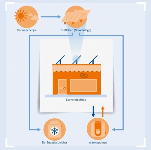 Vor allem die Kombination von Photovoltaik-Anlage und Eisspeicher ist in größeren Anwendungen nicht ungewöhnlich, für kleinere Unternehmen ist es aber eine echte Neuheit.