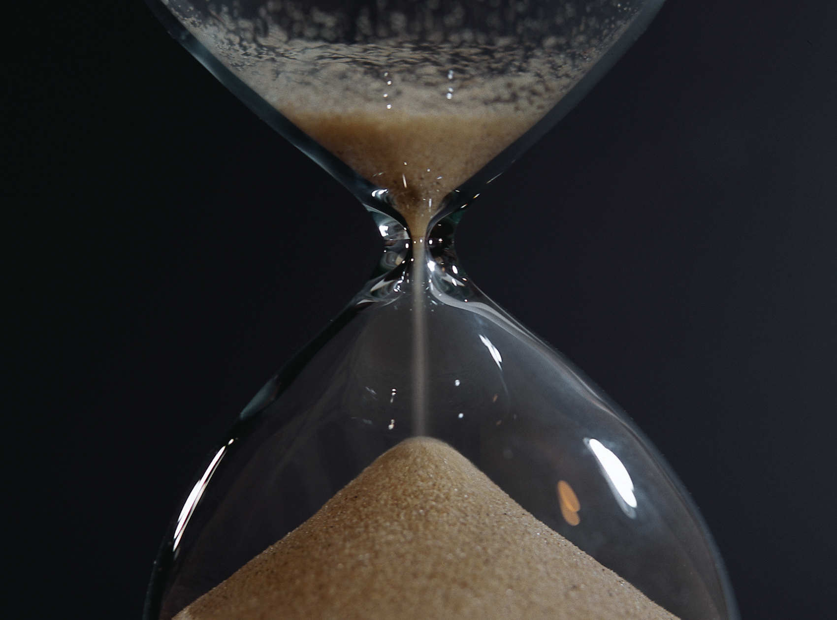 Nahaufnahme einer Sanduhr beim durchlaufen