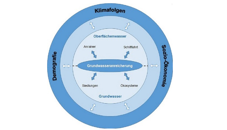 Die Datenauswertung ergab, dass mit einem Rückgang der Grundwasserneubildung von bis zu 30% gerechnet werden muss und gleichzeitig die bisherigen Spitzenlasten der Grundwasserförderung und der Infiltration auch im Rahmen der zukünftig projizierten Entwicklungen (Klima, Bevölkerungszuwachs) zur Modellierung herangezogen werden können.