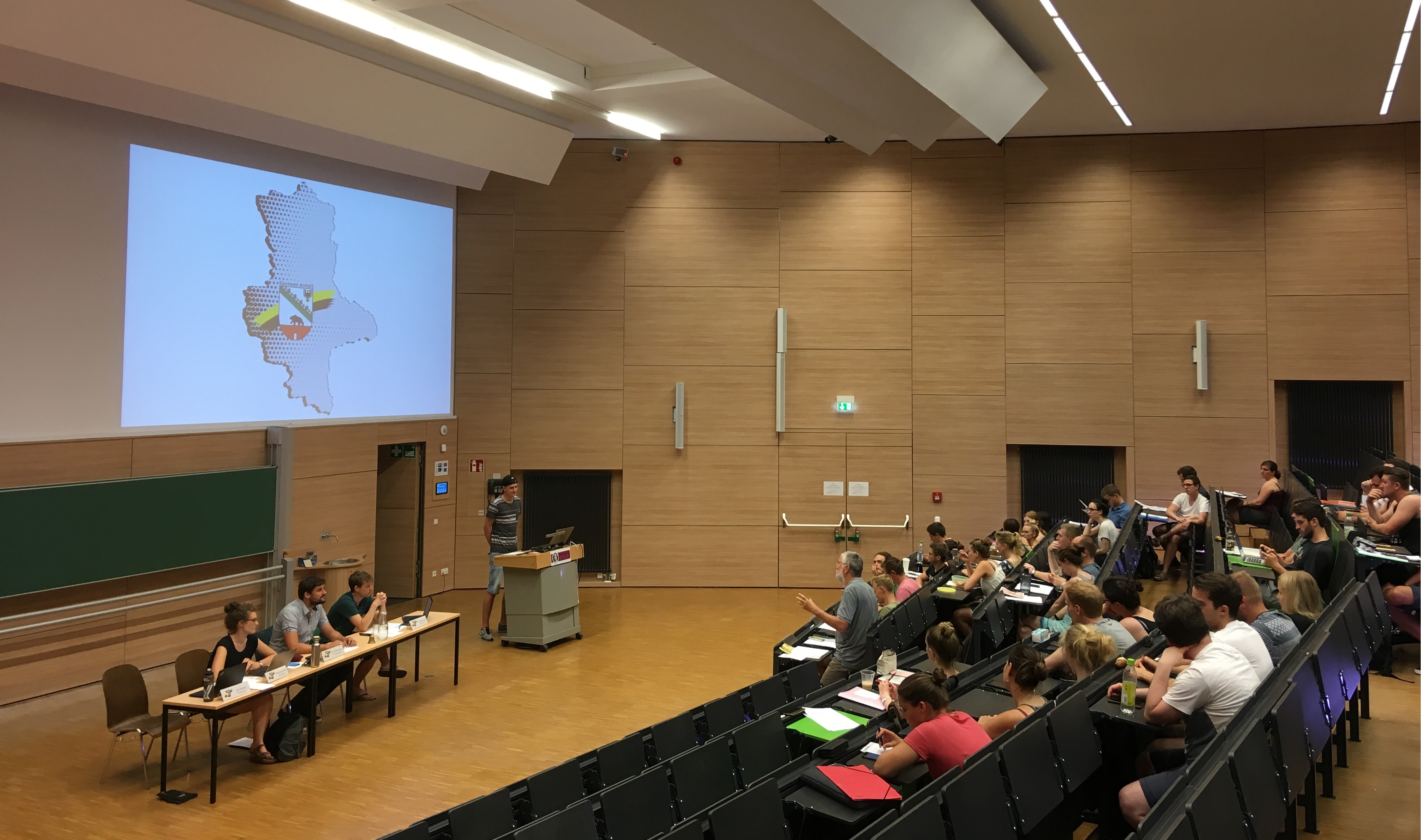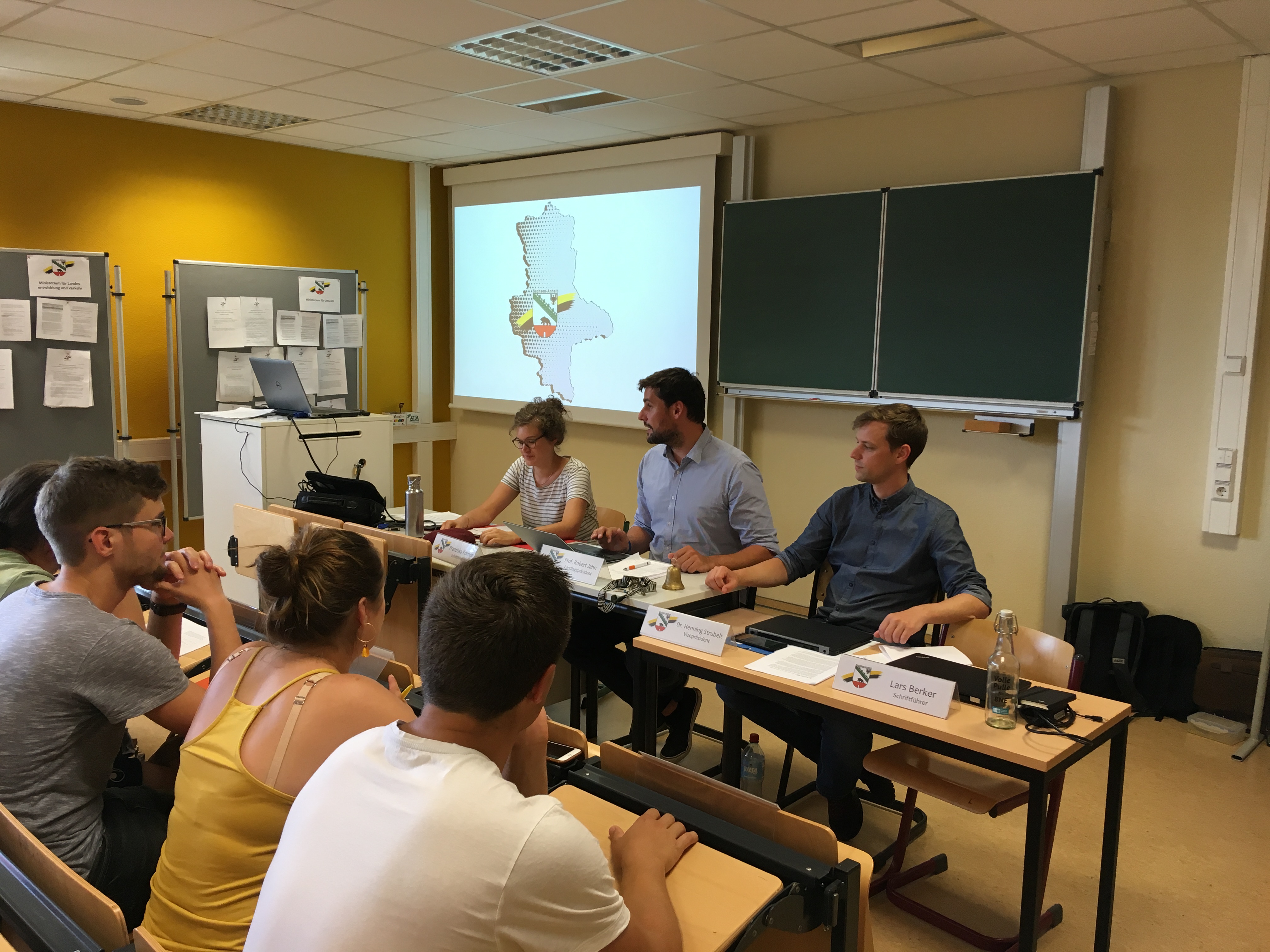 Höhepunkt des Moduls ist die Vorstellung, Diskussion und Abstimmung der verschiedenen Gesetzesentwürfe des landespolitisch orientierten „Regierungsprogramms" in (fiktiven) Plenarsitzungen des Landtags. Im Projekt wurden unter anderem Gesetzesentwürfe zur Bekämpfung von Energiearmut, zur Entsiegelung und zur Stromnetzentlastung entwickelt.