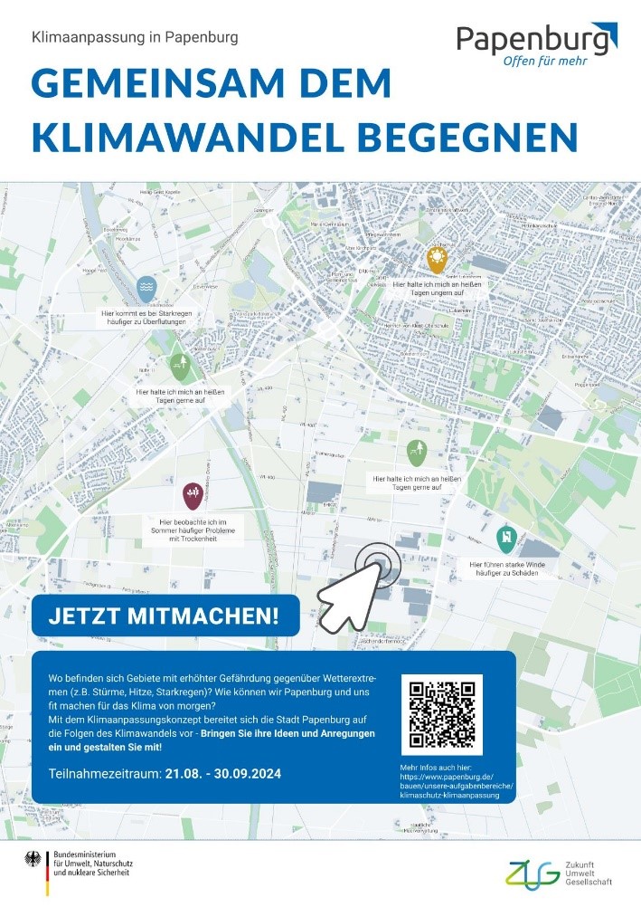 Das Konzept wurde im Rahmen des Programms „Maßnahmen zur Anpassung an die Folgen des Klimawandels“ unter dem Förderschwerpunkt A.1 „Erstellung eines nachhaltigen Anpassungskonzeptes“ vom BMUKN gefördert (80% Förderung durch den Bund, 20% Kostenübernahme durch Stadt Papenburg, Förderkennzeichen: 67DAA00311).
