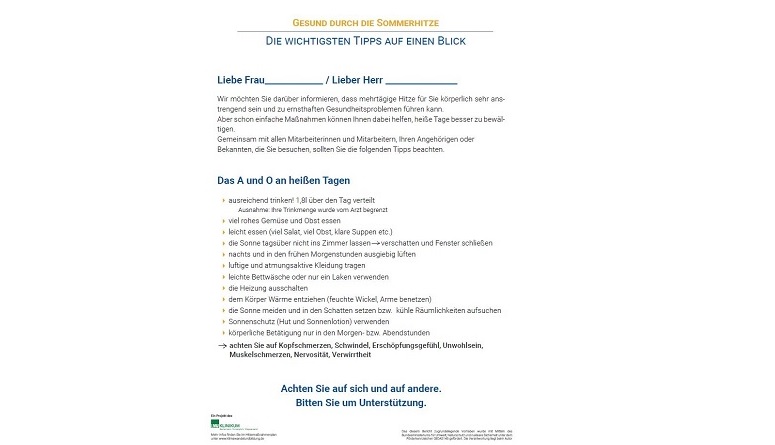 Hitzemaßnahmenplan für stationäre Einrichtungen der Altenpflege - aus der Praxis für die Praxis