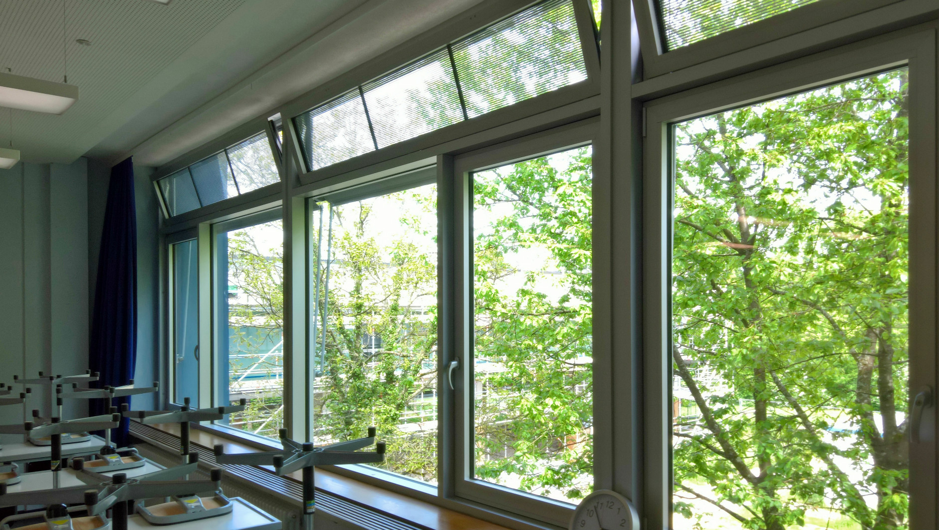 Durch permanenten Vergleich der Luftgütewerte in den Innenräumen (CO2, Temperatur) und den Außenklimadaten wird durch eine zentrale Regelung auf Basis eines örtlich definierten Stundenplans eine aktive, automatische Fensterlüftung realisiert. Nur noch in seltenen Fällen und auch nur für kurze Zeit überschreitet die CO2-Konzentration den Schwellwert von 1.500 ppm oder gar 2.000 ppm.