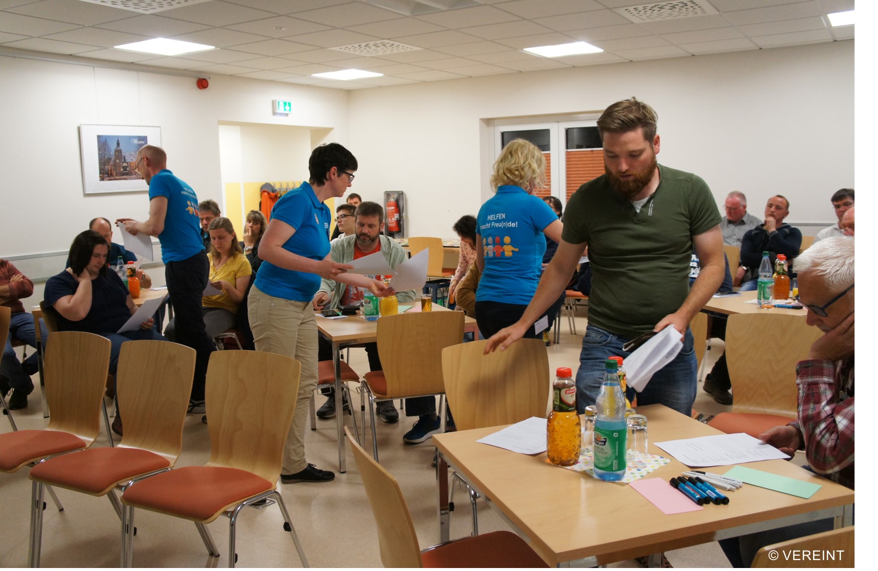 - Bürger*innen-Gesprächsrunden zur Datenerfassung, Hochwasservorsorgetag zur Sensibilisierung der Bevölkerung für Eigenvorsorge sowie zur Gewinnung als ungebundene Helfer*innen, Initiierung des Formates "Helfertreffen" mit dem Ziel, Helfendenprofile aktuell zu halten sowie die Helfer*innen zu Themen des Katastrophenschutzes zu informieren.