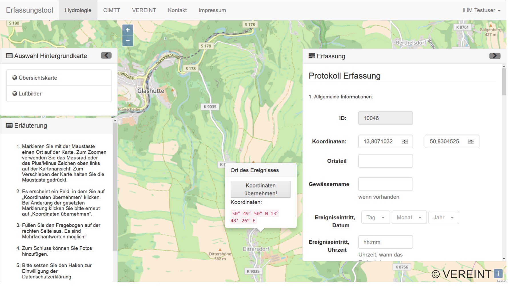 In der Maßnahme entstanden die Leitfäden "Entwicklung und Implementierung eines Helferpools" und "Starkregen, Hochwasser und resultierende Schäden gemeinsam mit der Bevölkerung erfassen und analysieren". (Download unter „Links“ oder http://vereint.cimtt.de/)