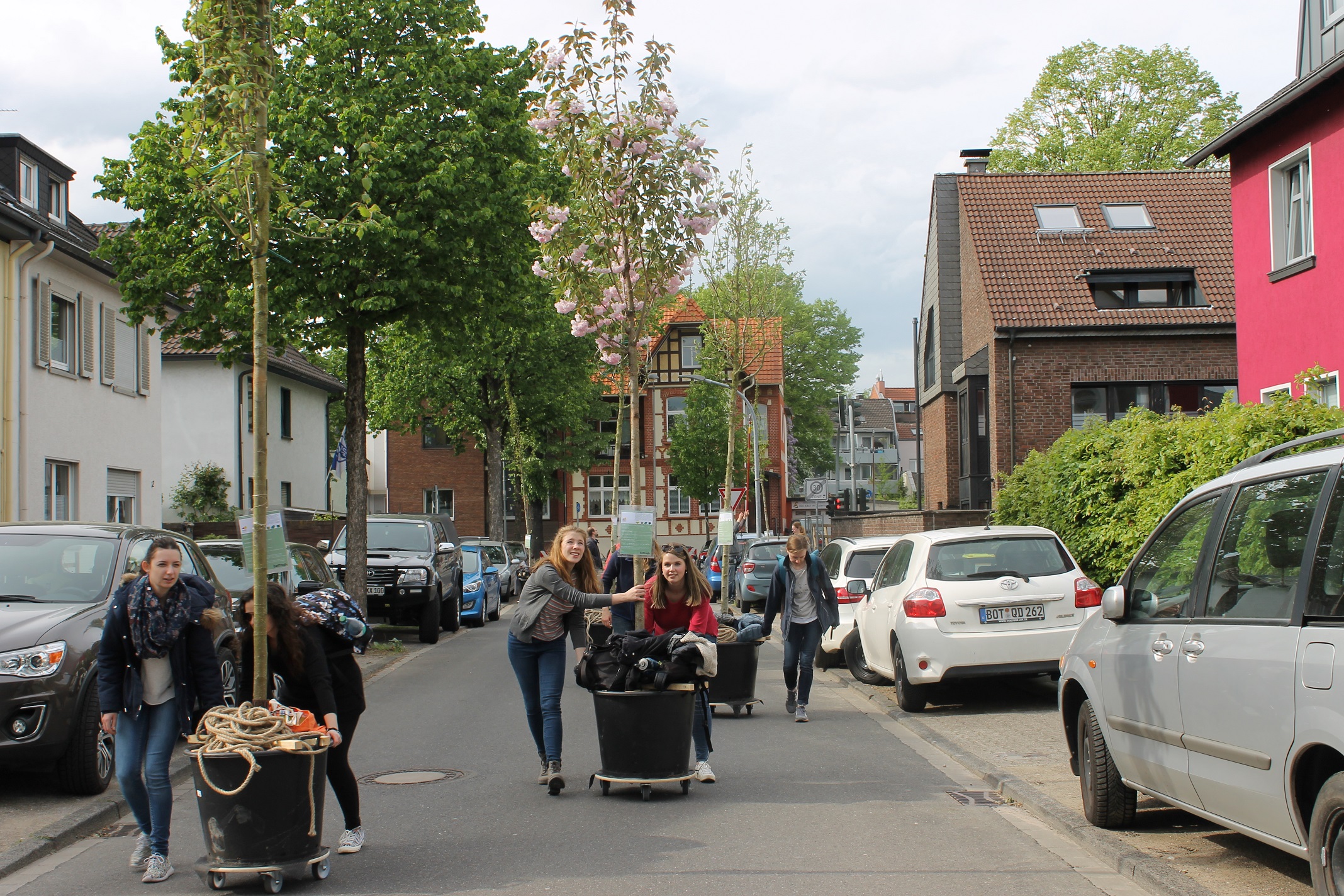 In 2018 wurden im Rahmen des Projekts zwei Workshops durchgeführt, bei denen gemeinschaftlich erarbeitet wurde, in welche Straßen des so genannten Wanderbaumquartiers die Bäume ziehen werden und wie lange sie dort jeweils verweilen. Der Standortwechsel wird im Rahmen der „Wanderbaumparade“ gemeinsam mit den Bürgerinnen und Bürgern durchgeführt. Die rollenden Bäume sind ein Highlight des Projekts und sorgen für zusätzliche Aufmerksamkeit. Wichtiger Bestandteil sind außerdem die Gießpatenschaften, die mit den Anwohnern und Anwohnerinnen des Wanderbaumquartiers geschlossen wurden. Das Projektjahr 2018 endete mit einer Auspflanzung der Wanderbäume auf einer öffentlichen Freifläche und einem gemeinsamen Abschlussfest, bei dem sich die Stadt Bottrop und die TU Dortmund bei allen Beteiligten für die Unterstützung bedankte.