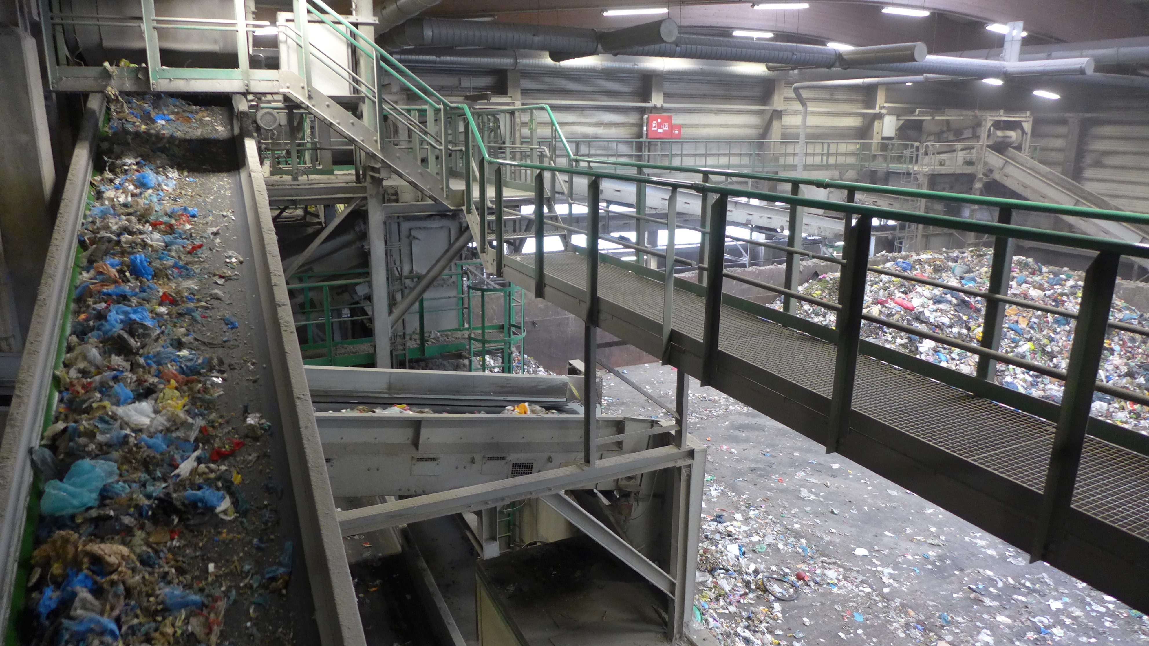 Gemischte Abfälle auf Förderbändern in einer Anlage zur Aufbereitung von Abfällen
