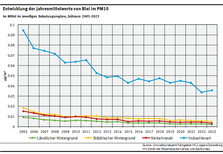 Bis in die Anfänge der 90er Jahre war der Straßenverkehr die Hauptquelle für die Umweltbelastung mit Blei. Bleiverbindungen wurden dem Benzin als „Anti-Klopfmittel” beigemischt. Die Autoabgase führten zu immensen Umweltbelastungen. Auch heute noch ist der Straßenverkehr eine wichtige Emissionsquelle, da Blei durch den Abrieb von Bremsen und Reifen in die Luft emittiert wird. Außerdem stammen noch geringfügige Emissionen aus der Industrie, vor allem der Metallverarbeitung, und der Verbrennung fossiler Energieträgern, die alle geringfügige Spuren von Blei enthalten.