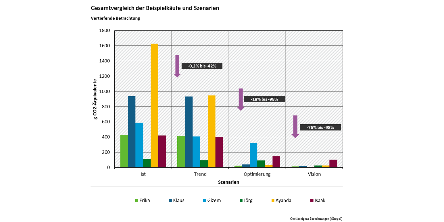 Wenn alle Optimierungspotenziale bei Versandverpackung, Retouren und Logistik gehoben werden, können pro beispielhaftem Onlineeinkauf zwischen 18 und 98 Prozent der Treibhausgas-Emissionen eingespart werden. Da es bei manchen Retouren zu einer Vernichtung der Waren kommt, werden in diesen Fällen auch die angefallenen CO2-Emissionen der Herstellung dem Onlinehandels-Prozess zugerechnet. Dies macht diesen Bereich besonders relevant.