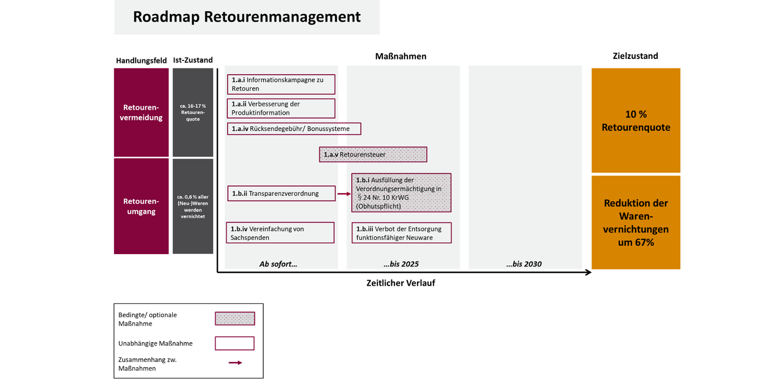 • Damit Händler das Spenden retournierter Waren der Vernichtung vorziehen, sollte die Politik Anpassungen im Umsatzsteuergesetz vornehmen.