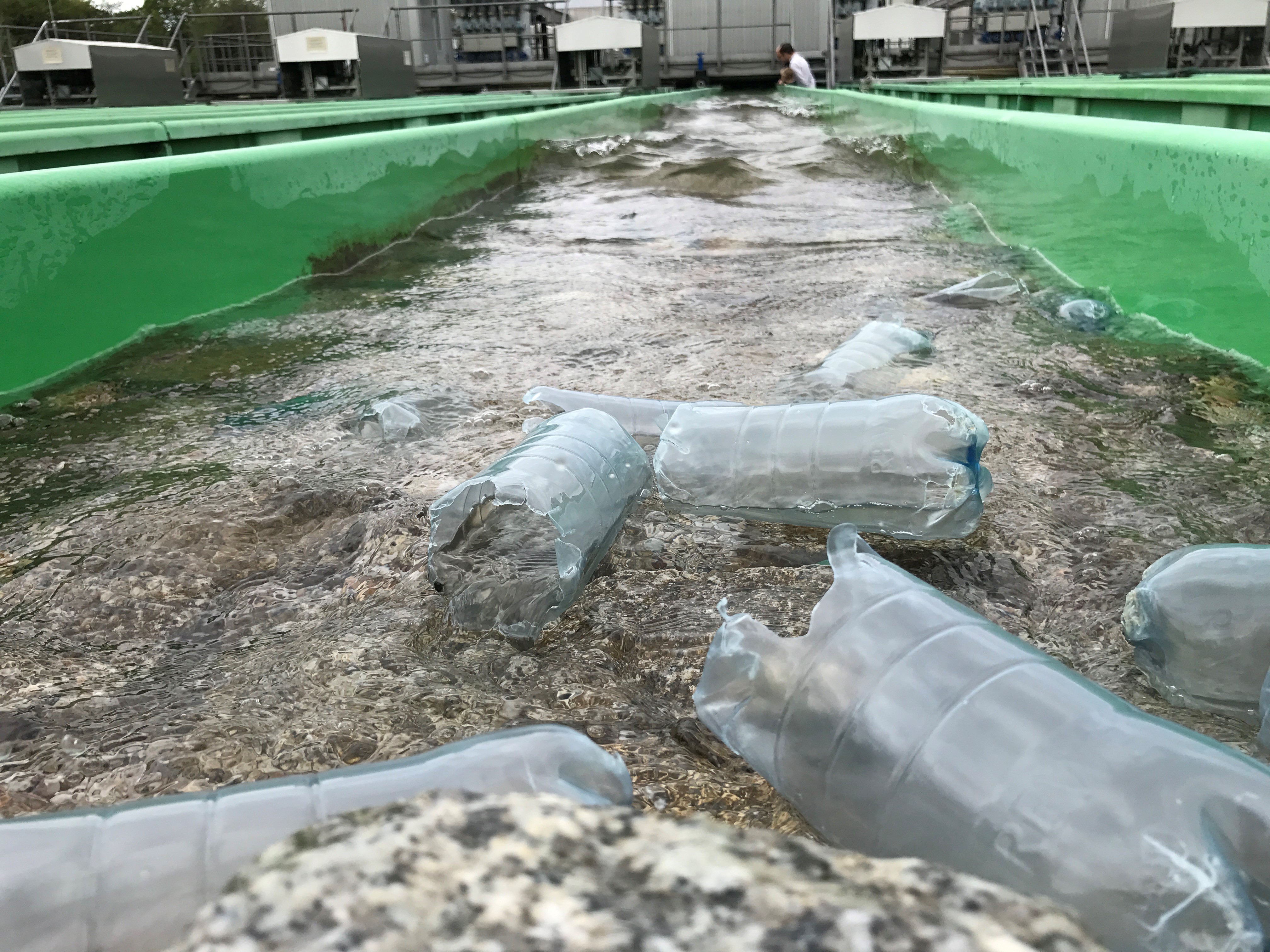 Kunststoffe zu entwickeln, die bei gleicher Stabilität schneller und umweltfreundlicher abgebaut werden können, ist das Ziel des Konsortiums ENSURE. Hintergrund ist, dass viele biologisch abbaubare Werkstoffe nicht die gleichen Materialeigenschaften haben, wie die Standardkunststoffe. Ferner sollen mit Blick auf die Quellen und Senken im terrestrischen Bereich innovative Methoden zur Quantifizierung und Charakterisierung, zum biologischen Abbau der relevanten Kunststoffe und zur Analyse gesellschaftlicher Wahrnehmungs- und Verhaltensmuster entwickelt werden. In der Fließ- und Stillgewässersimulationsanlage (FSA) des UBA wird in verschiedenen Uferzonen der naturähnlicher Wellenschlag simuliert, um die Stabilität von Kunststoffen unter naturnahen Bedingungen im Uferbereichen zu untersuchen. Unterschiedliche Einflüsse auf die Degradationsprozesse, wie z. B. die Einwirkung von UV-Licht oder die Beschaffenheit des Ufers werden betrachtet.