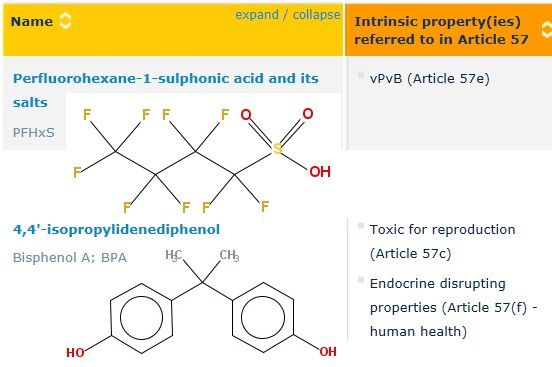PFHxS und BPA sind besonders besorgniserregende Stoffe