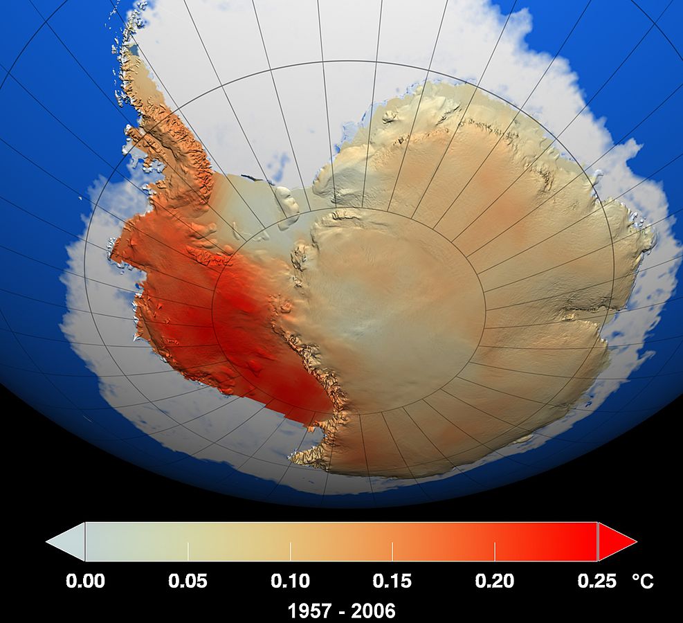 Im Zuge des globalen Klimawandels erwärmt sich auch die Antarktis. In den letzten 50 Jahren stiegen die mittleren Jahrestemperaturen an der Antarktischen Halbinsel um 2,6°C. Einzig die Arktis, insbesondere Spitzbergen, erwärmt sich noch schneller. Rekordwerte von über 18°C wurden im Februar 2020 an der Nordspitze der Antarktischen Halbinsel auf Seymor Island gemessen. In der Ostantarktis ist die Erwärmung der Lufttemperaturen bislang sehr gering ausgefallen. Für den gesamten Kontinent beträgt die Erwärmung 0,12°C pro Jahrzehnt.