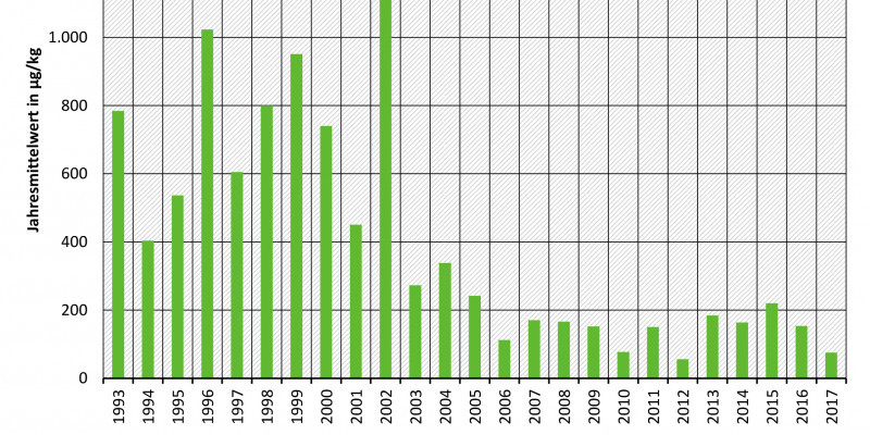 Die Umweltqualitätsnormen werden im Zeitraum 2014 - 2016 bei den Cyclodien Pestiziden (Drine), Endosulfan, Pentachlorbenzol, Pentachlorphenol und der Summe DDT (einschließlich 4,4-DDT) eingehalten.