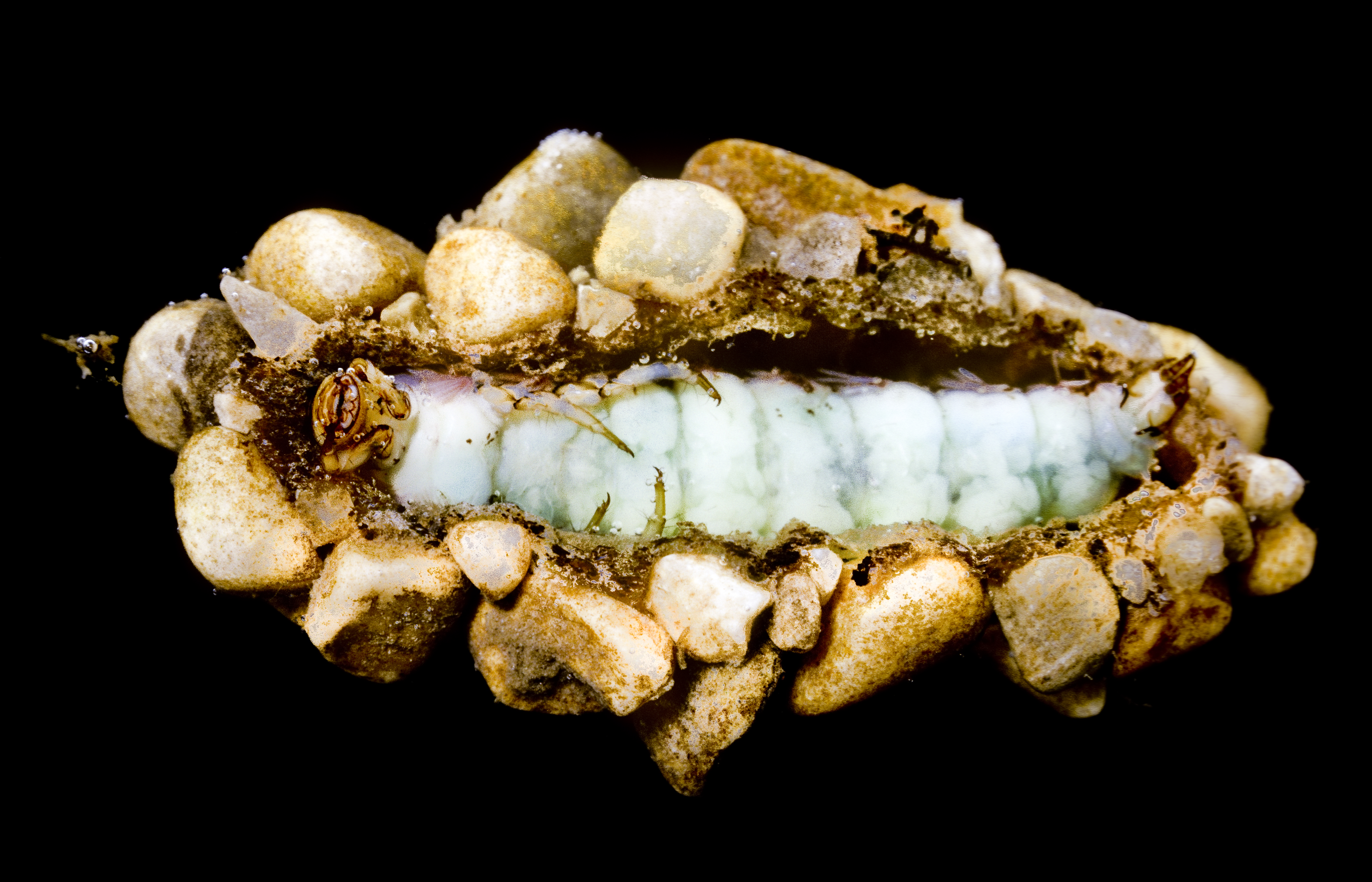 Die Larven dieser Köcherfliege besiedeln kiesig-steinige Bereiche des Bachbettes. Sie bauen sich ein stabiles, zylindrisches Wohnhaus, den Köcher, in dem sie kleine Sandkörner mit Gespinstfäden aus ihren Spinndrüsen verkleben. Das Hinterende des Köchers wird mit einem Stein verschlossen. An dieser Besonderheit kann man diese Art sofort erkennen. Die Larven sind Allesfresser. Nach der Verpuppung schlüpfen die erwachsenen Tiere ab dem späten Frühjahr. Die Eiablage erfolgt in stark überströmten, flachen Bachabschnitten. Dabei fliegen die Weibchen zur Wasseroberfläche und entlassen ihren Gelegeballen mit den Eiern in die turbulente Strömung.