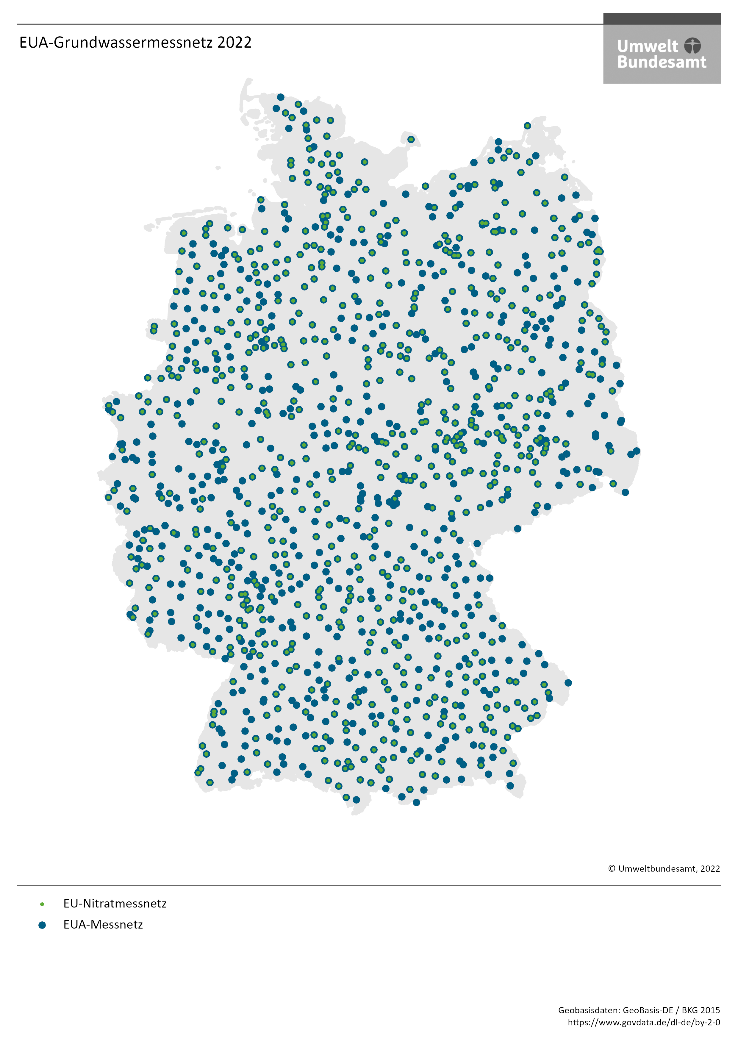 Des Weiteren betreiben die Bundesländer das sogenannte EUA-Messnetz mit aktuell 1264 Messstellen. Die Daten dieser Messstellen sollen einen zuverlässigen und repräsentativen Überblick über die Grundwasserbeschaffenheit in Deutschland geben und sind die Basis für die jährlichen Zustandsberichte Deutschlands an die Europäische Umweltagentur EUA sowie zur Berichterstattung nach EU-Nitratrichtlinie (91/676/EWG). Auf Grundlage der „Verwaltungsvereinbarung zum den Datenaustausch im Umweltbereich zwischen Bund und Ländern″ haben sich die Länder verpflichtet, dem Umweltbundesamt jährlich die Daten dieses Messnetzes zu übermitteln.