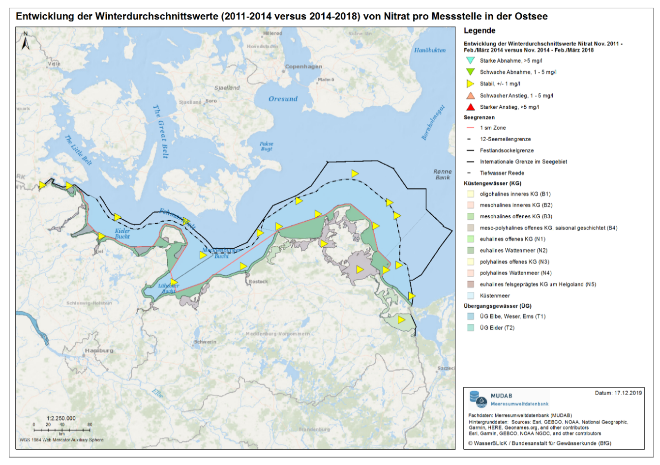 Sowohl die Bewertung gemäß WRRL als auch die Anfangsbewertung gemäß Meeresstrategie-Rahmenrichtlinie kommt für die deutschen Nord- und Ostseegewässer zum Schluss, dass der gute ökologische bzw. der gute Umweltzustand in beiden Meeren verfehlt wird. Eutrophierungseffekte, vor allem in den Küstengewässern, tragen wesentlich zu dieser Verfehlung bei.