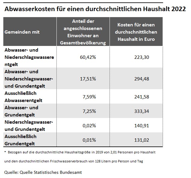 In einer Tabelle sind die Abwasserkosten für einen durchschnittlichen Haushalt 2022 dargestellt Abwasserkosten für einen durchschnittlichen Haushalt 2022